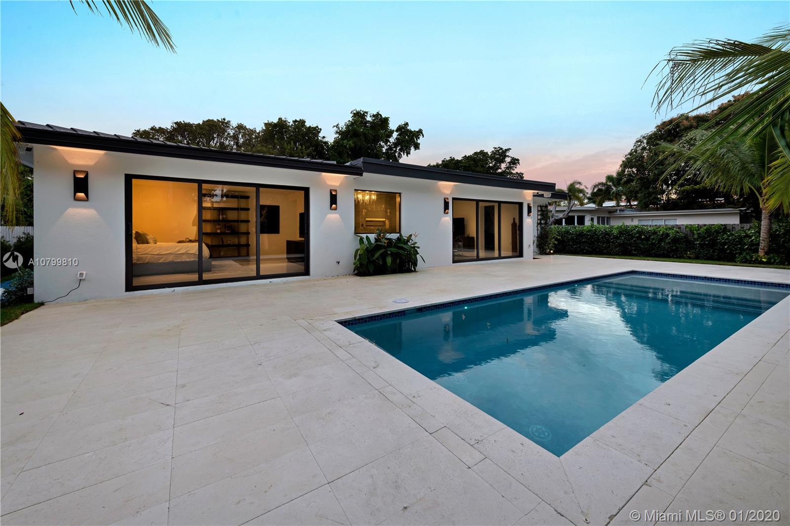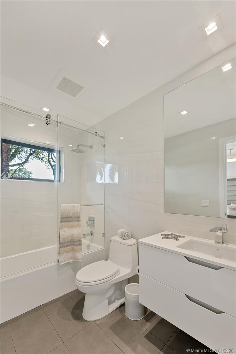"MIAMI BEACH MEETS MIAMI SHORES" with this gorgeous fully remodeled home. This stunning masterpiece features 4 bedrooms each with full bathrooms en-suite. Impeccably designed with no expense spared. This residence boasts 24x48 White Carrera Marble, custom Mia Cucina kitchen with quartz countertop, Sub-Zero Wolf appliances, full guest bathroom, laundry room, gas tankless water heater and stove, Sonos surround sound, and security system. The one of a kind master bedroom suite will leave you speechless with its designer closet and Armani Roca marble bathroom. The outside of the home is beautifully adorned with new landscaping, sprinkler system, salt water pool and accent lighting throughout. Truly a turn-key gem in the best location of Miami Shores just steps away from the bay.