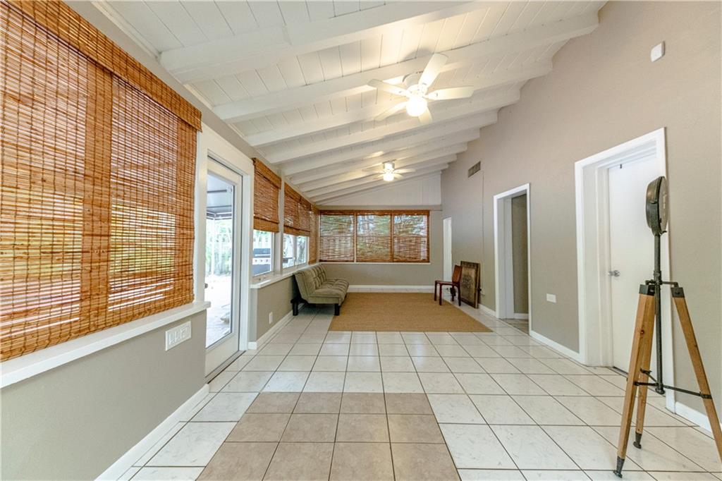 Located in South Victoria Park this 2-Bedroom, 2-Bath home offers excellent proximity to Las Olas Bl with its shops and restaurants. Situated on a leafy 50' x 130' fenced lot the property offers a floor plan with great flexibility. A spacious Great room with beamed ceilings is the center of the home and has bedroom access on opposite sides of the main room. A well-equipped kitchen has newer appliances and hardwood cabinetry. Sliding doors from both the Great room and Kitchen open onto a large covered terrace and overlook the over-sized pool and fenced yard. Other features include a deep attached carport with access to the laundry/utility room.