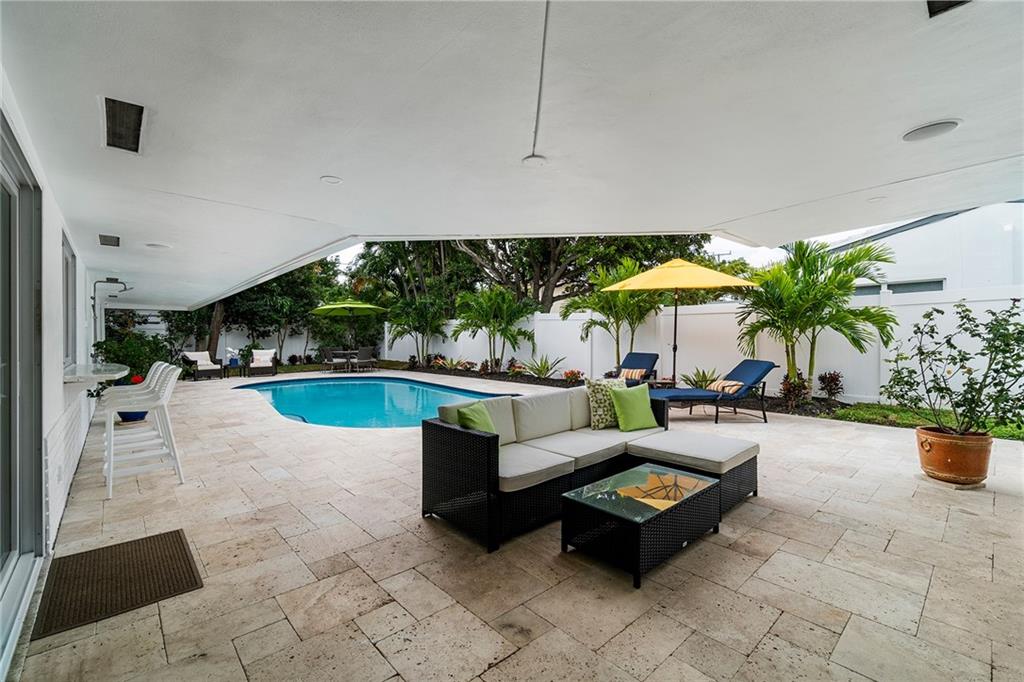 Best turnkey value in Harbour Inlet! Come see for yourself!! Property has had a total renovation, is minutes from Harbor Beach and a short walk or drive to everything the city of Fort Lauderdale has to offer. Impact glass, gourmet kitchen, four large bedrooms, teak and porcelain floors. Newer roof, 2 zoned AC. Updated heated pool, deck, poolside bar, lighting, and landscape provides plenty of room for outdoor entertaining or relaxing. Pool, side and back yards fenced for privacy. New three zone irrigation with rain sensor. Two car garage as well as garage storage and work bench. Backyard storage shed for pool equipment.