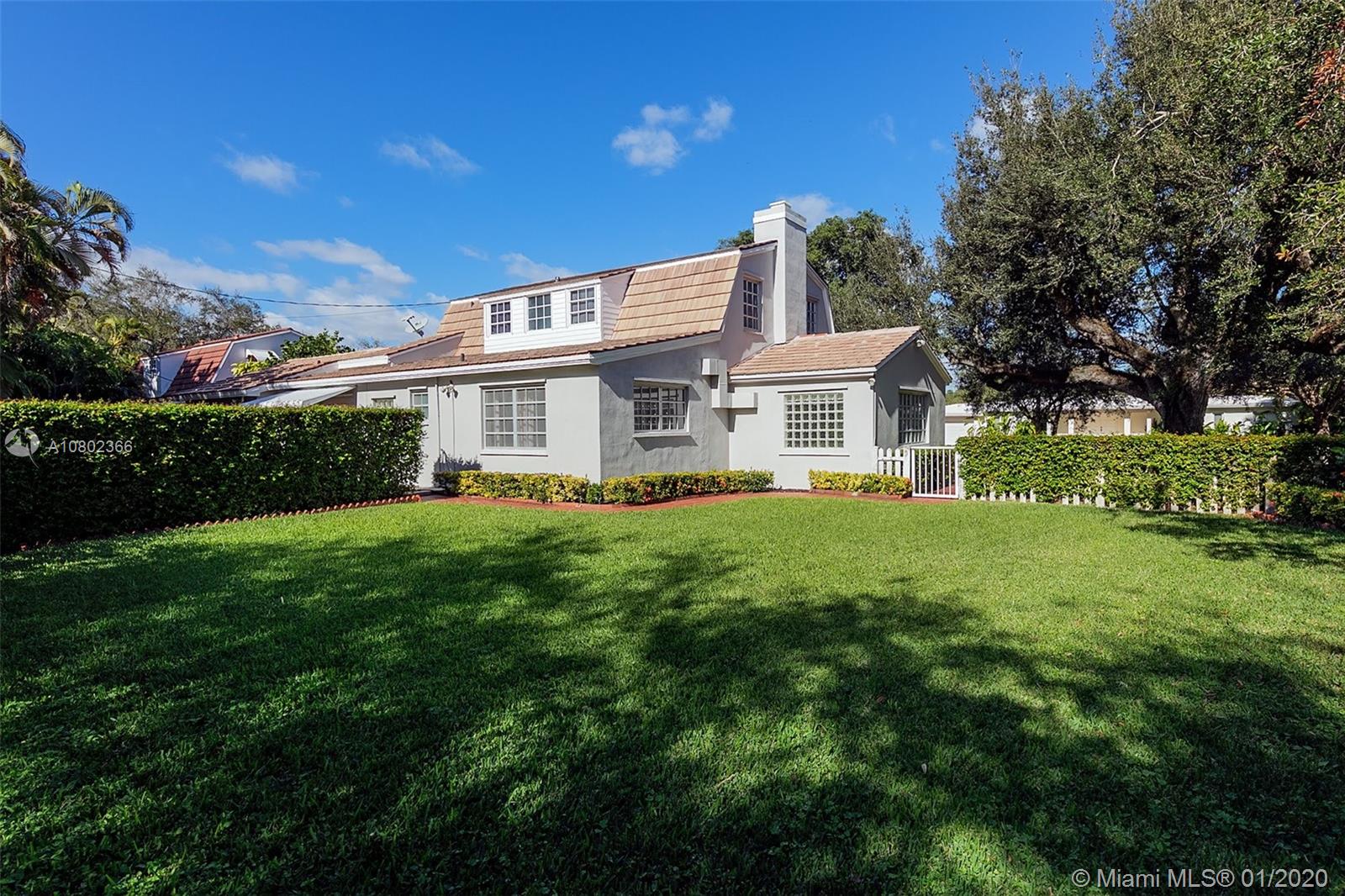 Beautiful 2 story "Dutch Colonial" home, lots of natural light, charming architectural details, large living areas, high ceilings, corner lot, nicely landscaped, only 2 owners since 1950, room for pool, superb location in the Gables in a nice quiet neighborhood, surrounded by oak trees with close proximity to University of Miami, Hospital, Shops at Merrick park, metro rail, downtown Coral Gables, South Miami and Coconut Grove. A great place to call home! Easy to show.