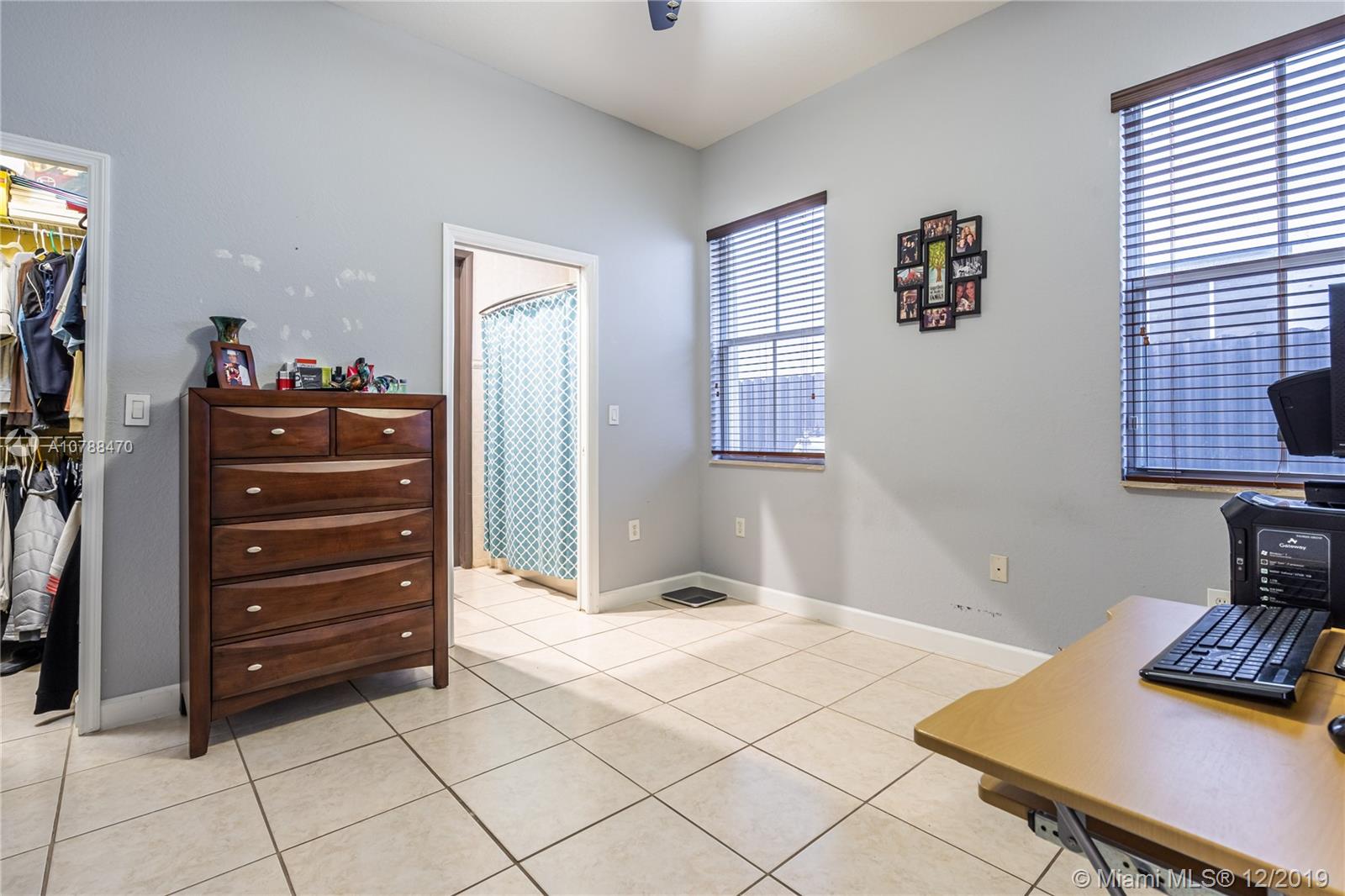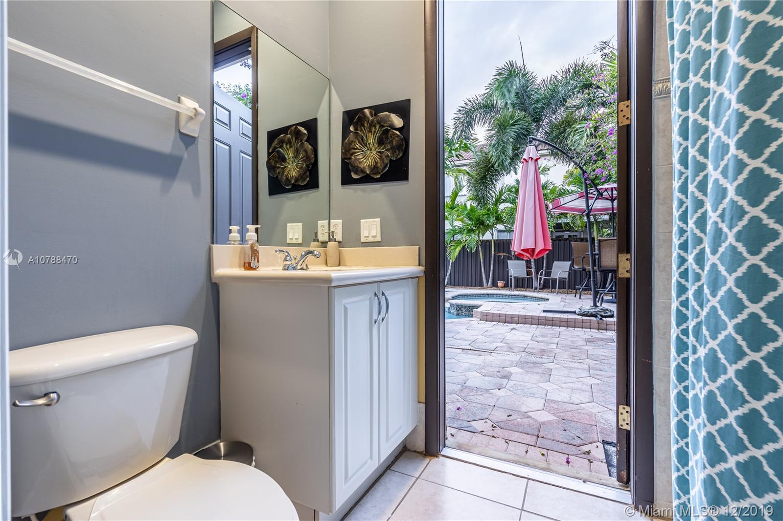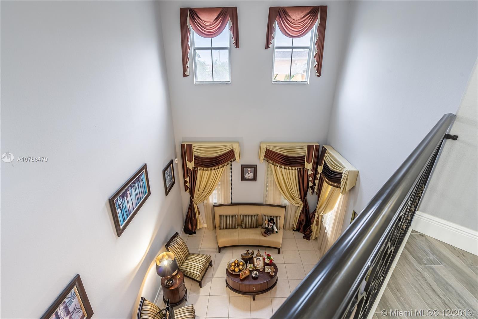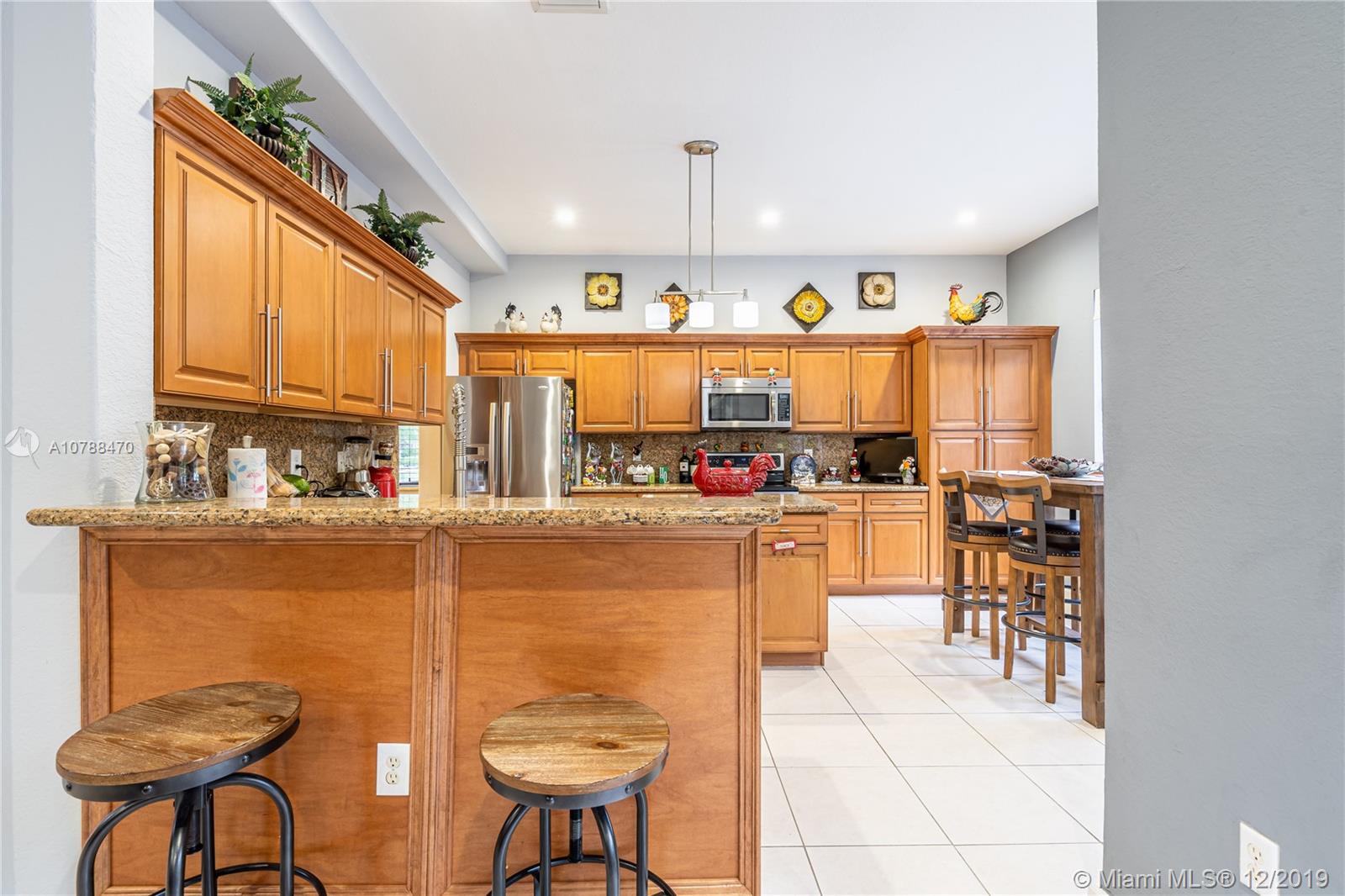 This amazing corner home is perfect for entertaining & large family gatherings. Near Turnpike & I-75. Totally remodeled bathrooms with double rain fall shower heads and seating area in master shower; featuring double sinks, vanity area and gorgeous tile and counter tops throughout. Large kitchen with granite counter tops, real wood cabinets & stainless-steel appliances offering an open concept to living/TV room with gorgeous, custom-made stone accent wall. All paved backyard paradise with outdoor grill & sink; palm trees lining aluminum fencing. Upstairs balcony terrace from master overlooking pool. Remodeled wrought-iron railings on stairs. Two brand new air condition units. Irrigation system in front with beautifully kept landscaping. Two inside car garages & driveway for 5+ cars. No HOA