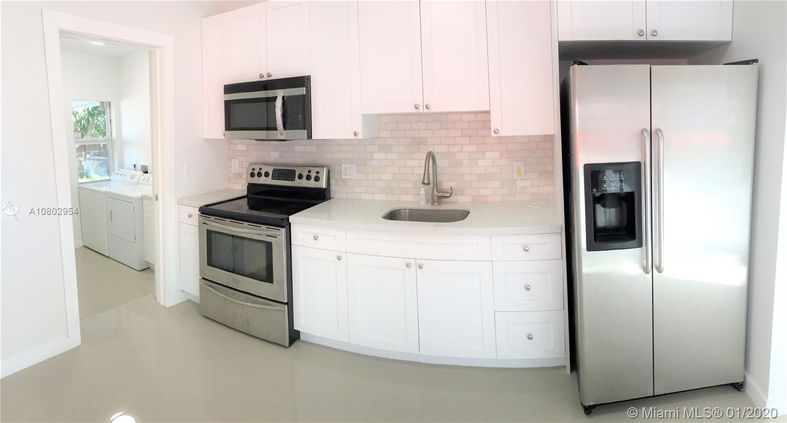 Excellent opportunity to own this lovely 2 bed 1 bath home, Sits on an nice size lot. Seller willing to help with some buyer's closing costs if needed, This property has been tastefully remodeled. New kitchen, remodeled bathroom, new porcelain tile throughout, separate laundry room which can be easily be converted into a third bedroom, new hurricanne impact resistant windows, competely painted inside and out. Must see, Move in ready