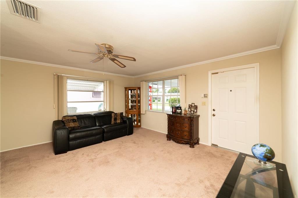 House discounted $1700.00 to up date bathroom. NO LAND LEASE. Super Quite, safe cul-de-sac location, best location with in complex. Newer kitchen cabinets and granite countertops. newer carpet. New 6-panel doors. Lovely four season room with central air. House has carport. Brand new refrigerator, new garbage disposal, has Washer dryer hookups. New as of Jan 2020 central heating & Air. 2 club houses with pools, sauna, shuffle board, and small 9 hole golf course. Grass cut & edged 32 times a year, fertilizer and Pest and weed control 3 times a year, house painted in 2019, sewer and water included. Able to move in right away. Property has room for addition of extra bedroom & bathroom.