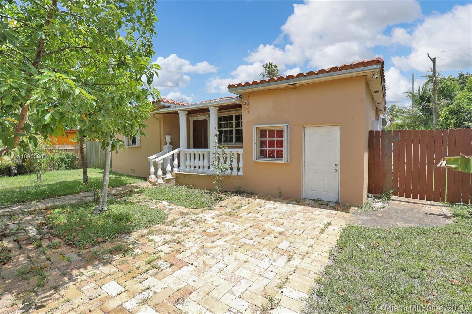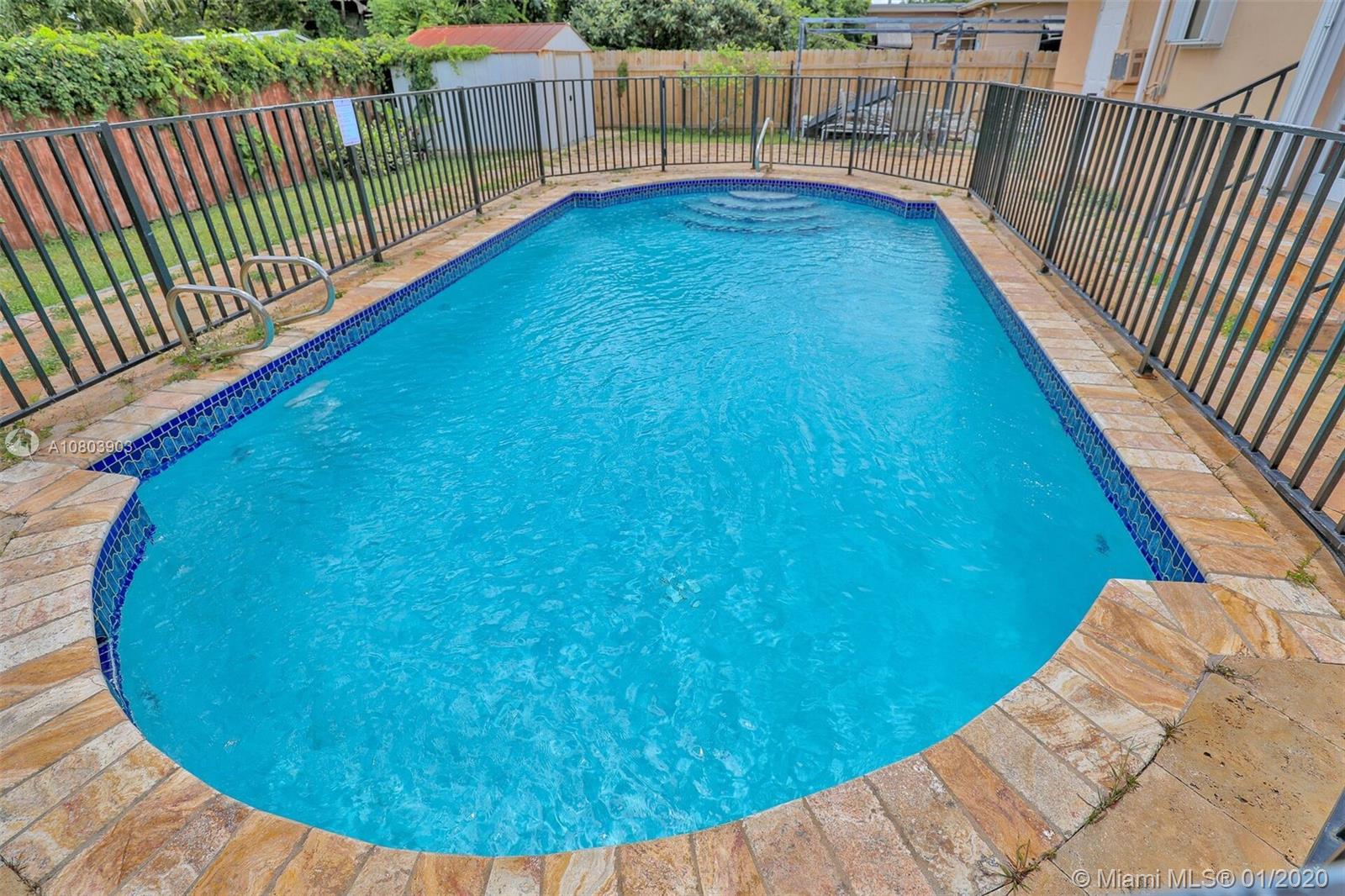 Live the AMERICAN DREAM! Beautiful open-concept split-bedroom home in desirable +quiet Monticello Park! This home features 3 bedrooms, 2 bathrooms, with a DEN/office, GRANITE counters, tons of kitchen cabinet space, TILE floors, large closets, a sparkling POOL with NEW pool pump and a fence to protect children and pets, FRENCH doors, beautiful TRAVERTINE-paved patio, mature fruit trees, a peaceful front PORCH, and a paved driveway inside a rolling iron fence. Accordian SHUTTERS make hurricane prep easy and save you money on homeowner's insurance! Shed for extra storage. Central location near NE 163 ST, 5 min to I-95, 5 min to Biscayne Blvd, 15 min to Aventura and Sunny Isles Beach!
