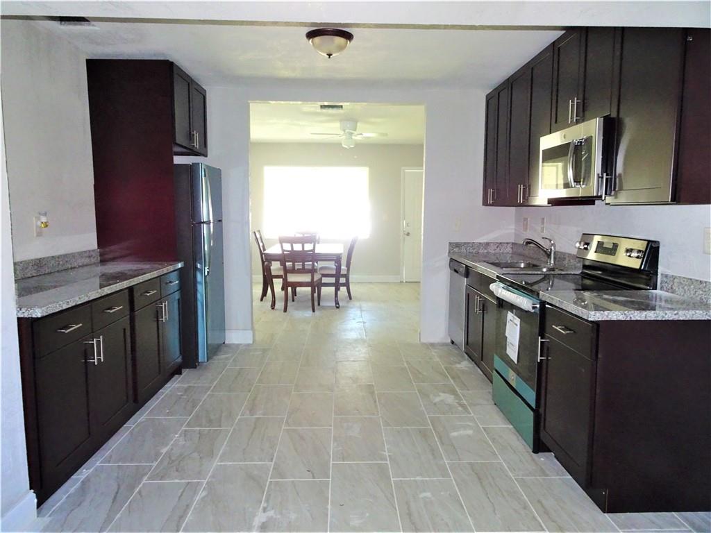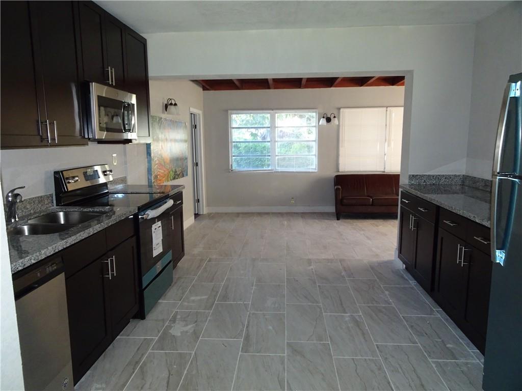Nicely presented 4 bedroom, 3 bath, Single Family Home in East Pompano Beach. This home has many features including; 42 inch Espresso Wood Cabinetry, Gray Brazilian Granite Counter-tops, Stainless Steel Appliances with 12 month warranty, new roof in 2008, A/C with 10 year warranty, modern porcelain tiles in the living areas, laminate wood flooring in the bedrooms, updated bathrooms, new flat roof, open floor plan, fresh paint in and out, no HOA, approximately 1600 sqft under air, and a private backyard. FHA and VA are welcomed.