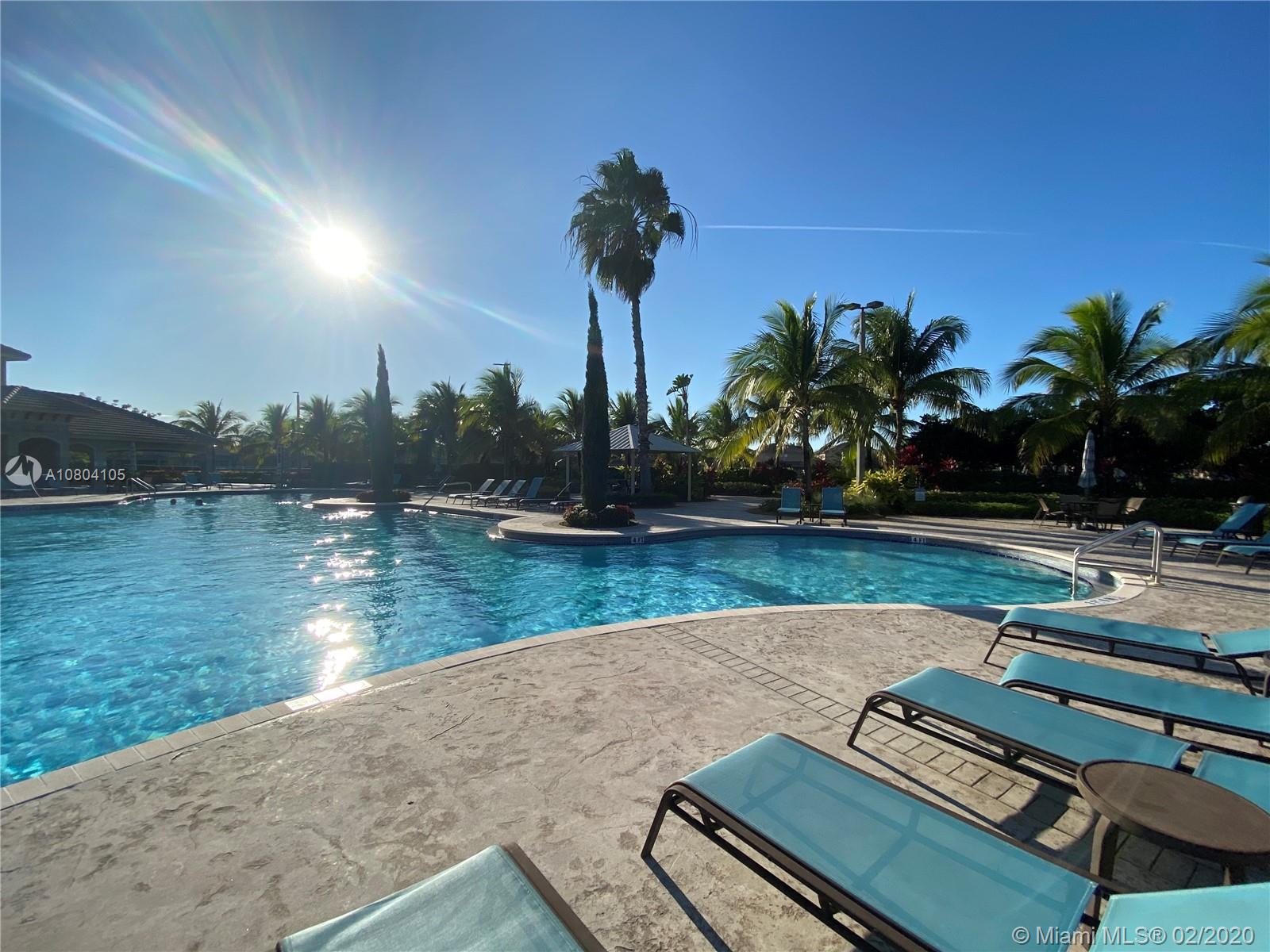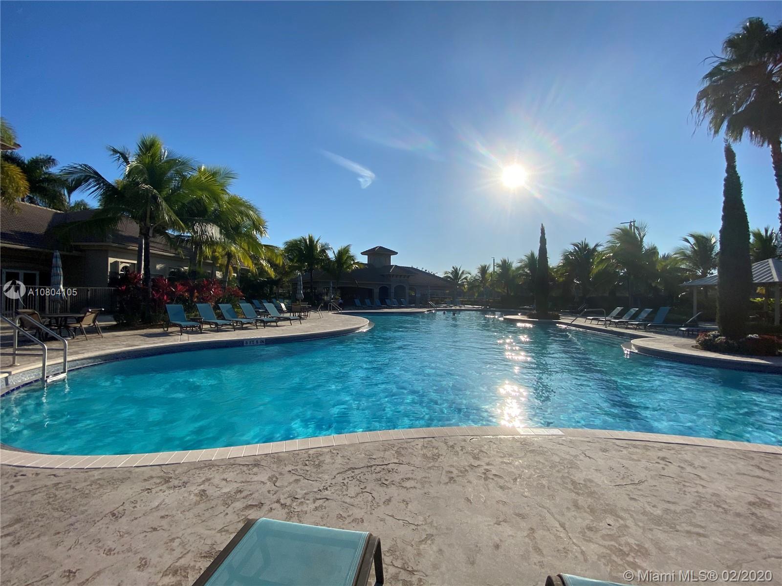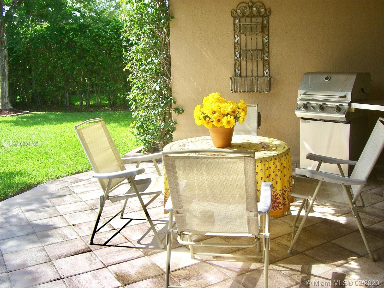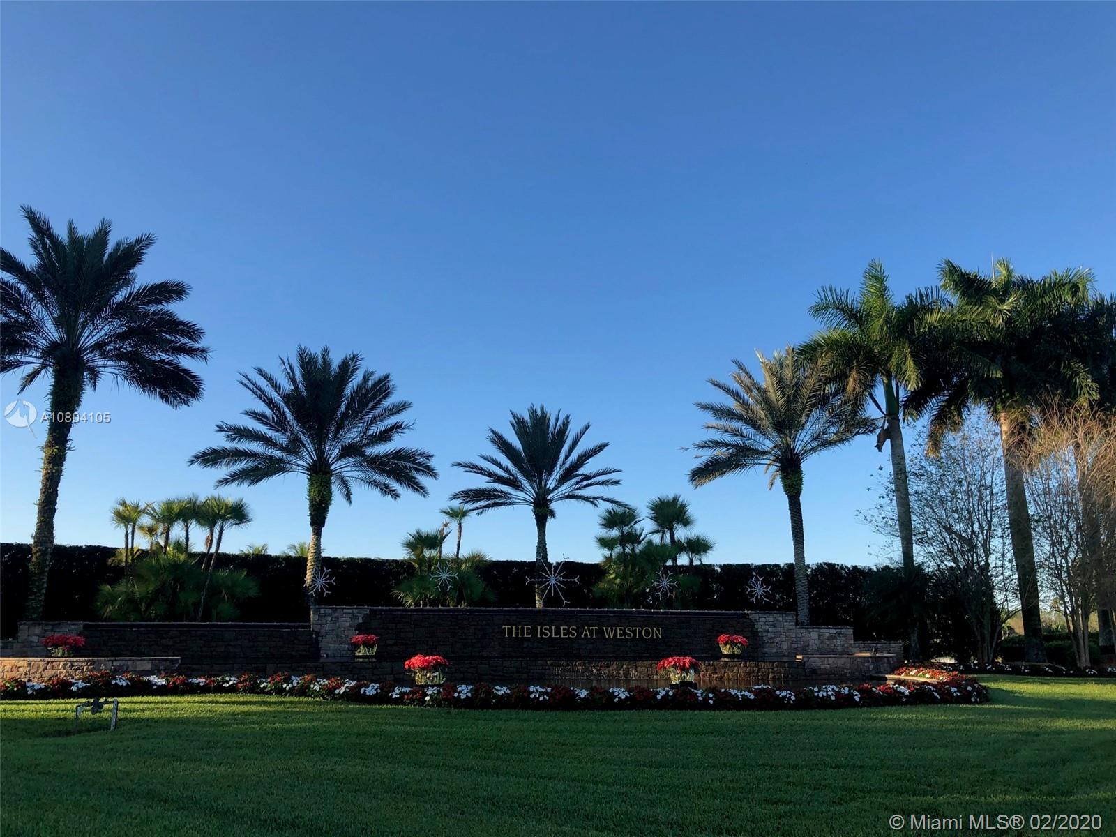 Tucked on a quiet cul de sac in The Isles at Weston, a gated community with state of the art Community Center, recently updated including heated community pool, kiddie pool, exercise room, basketball courts, playground, gazebo and more. This spacious one story is neutral and ready for immediate occupancy. Double split floor plan with spacious master bedroom, 9 foot ceilings throughout.Stone look tiles flow throughout the home. Wood cabinetry in kitchen with sunny breakfast nook. Sliders to private partially fenced and hedged yard with expanded paver patio with overhang and room for a pool. Master bath with roman tub, dual sinks and shower. Beautiful curb appeal with paver driveway and bougenvilla. Walk to elementary, middle and high school.