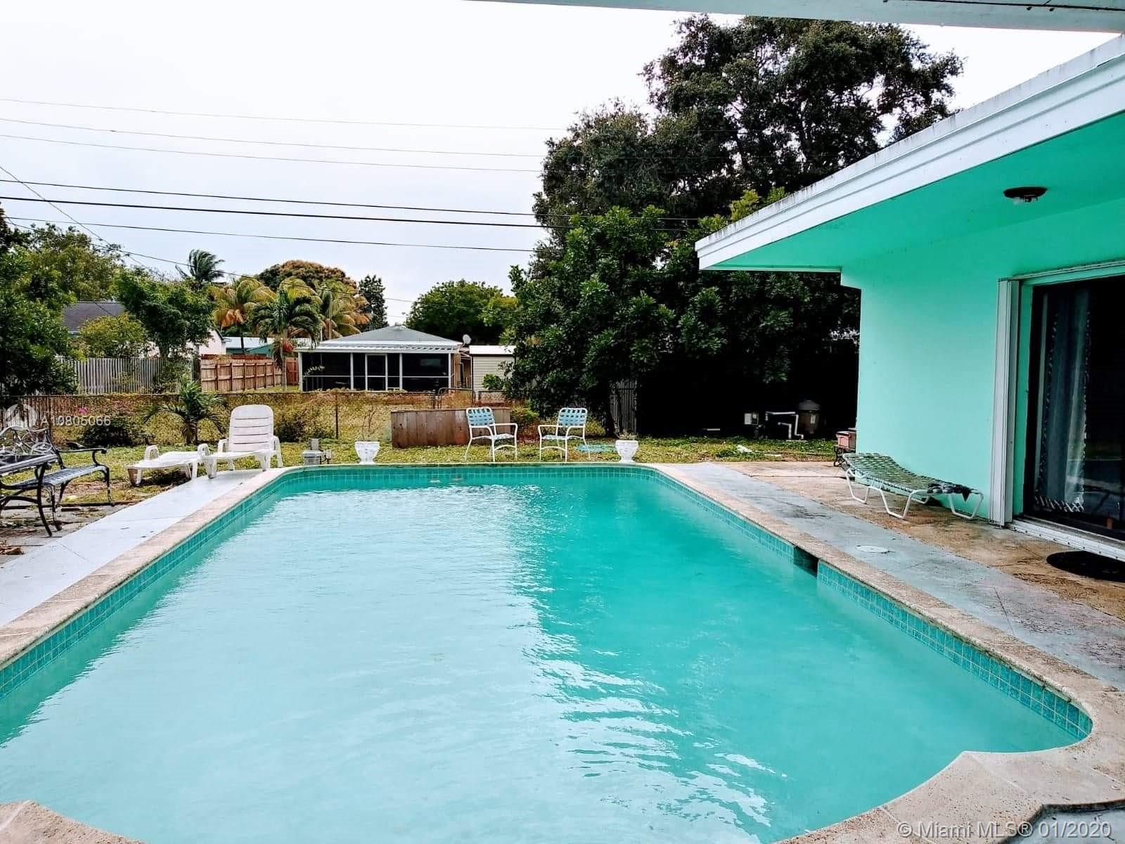 3 BEDROOM 2 BATH WITH POOL AND BONUS DETACHED STUDIO WITH FULL BATH. A ONE OF A KIND POOL HOME ON AN OVERSIZED LOT IN THE HEART OF HOLLYWOOD. THIS PROPERTY HAS 2 BUILDINGS ON 1 LOT! THE MAIN HOUSE OFFERS 3 BEDROOMS, 2 REMODELED BATHROOMS, AND REMODELED KITCHEN. THE DETACHED POOLSIDE CABANA STUDIO IS GREAT AS A GUEST HOUSE, OFFICE, OR CAN BE RENTED FOR EARNING EXTRA INCOME, AND IS CURRENTLY LEASED FOR $900 PER MONTH (TENANT IS MONTH TO MONTH). PERFECT FOR ENTERTAINING, OR FOR ENJOYING YOUR OWN OASIS. COME AND SEE THIS GEM. SOLD AS IS. PLS CALL/TEXT LISTING AGENT FOR LBX COMBO