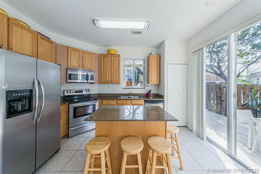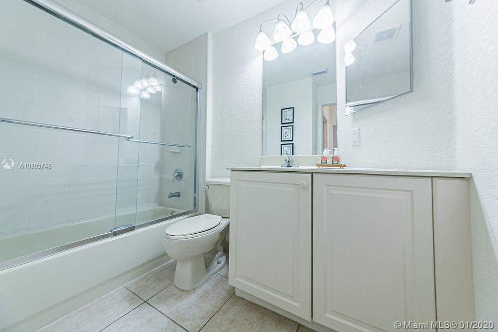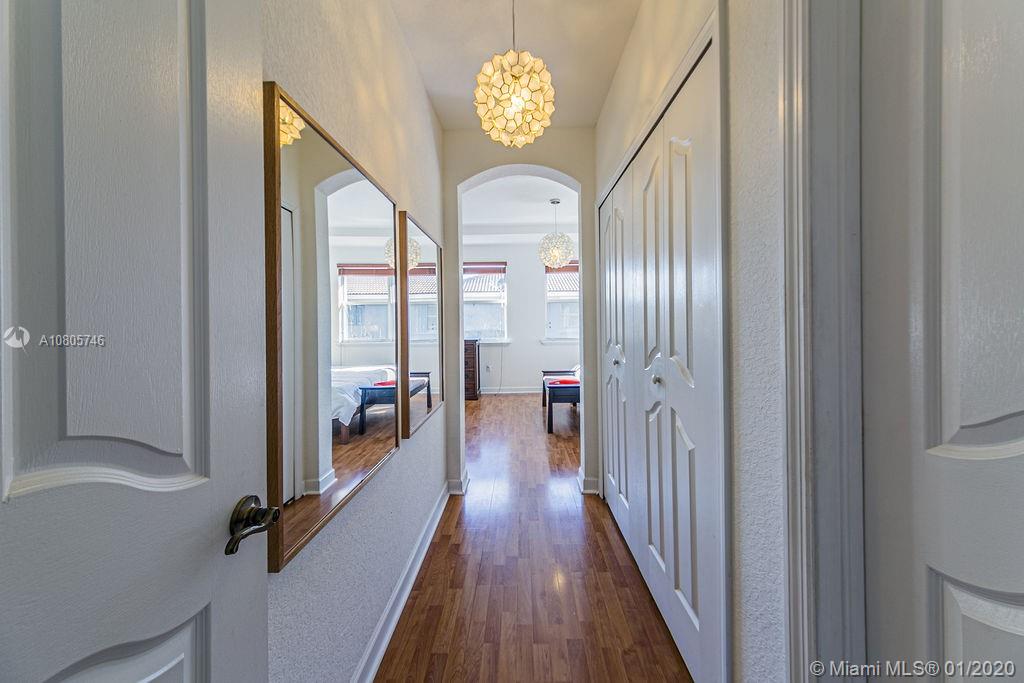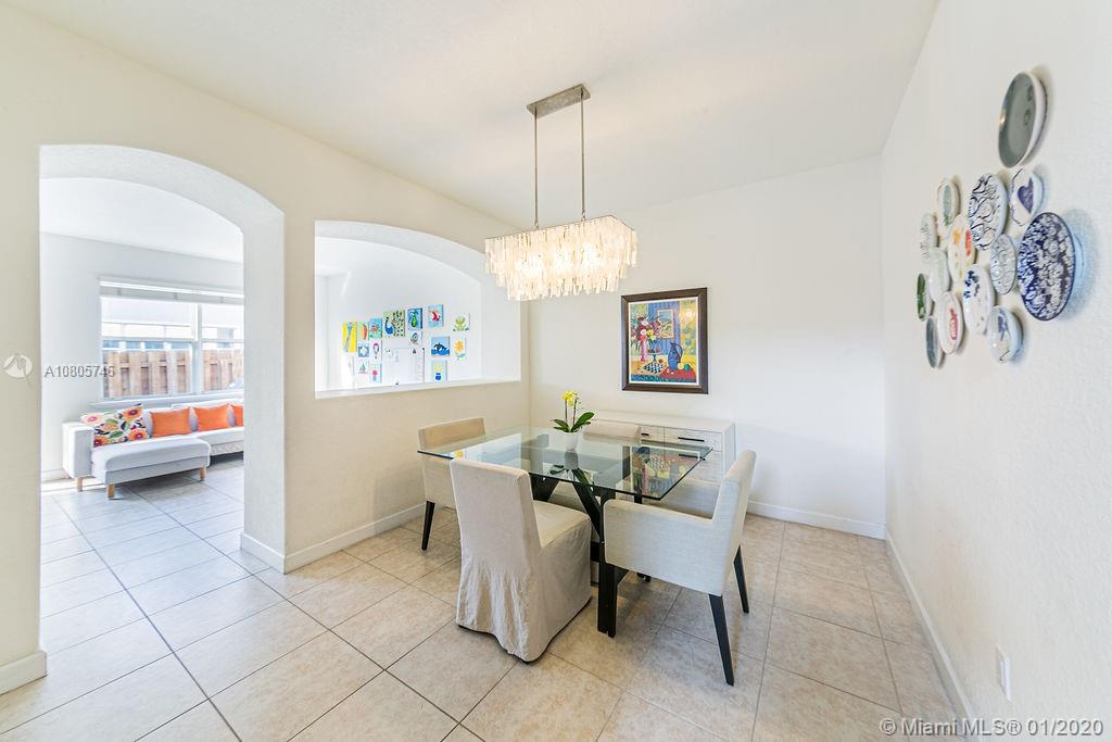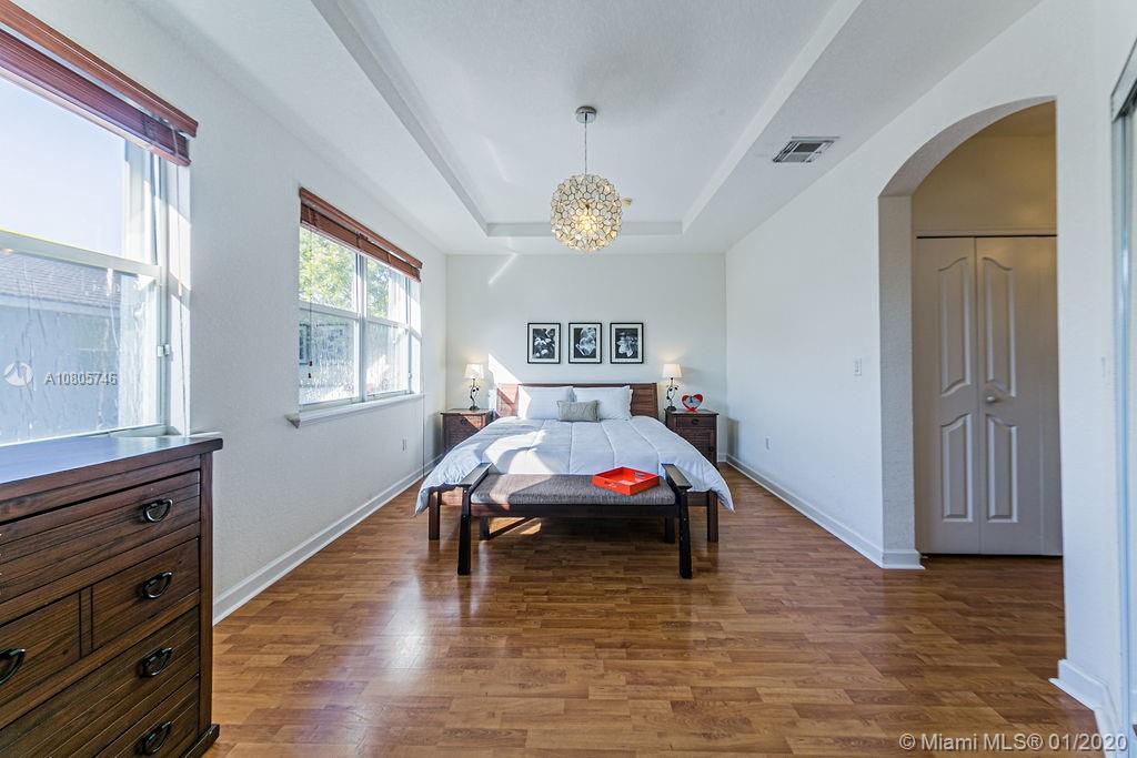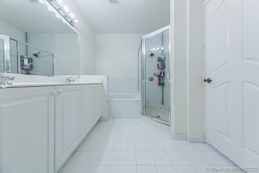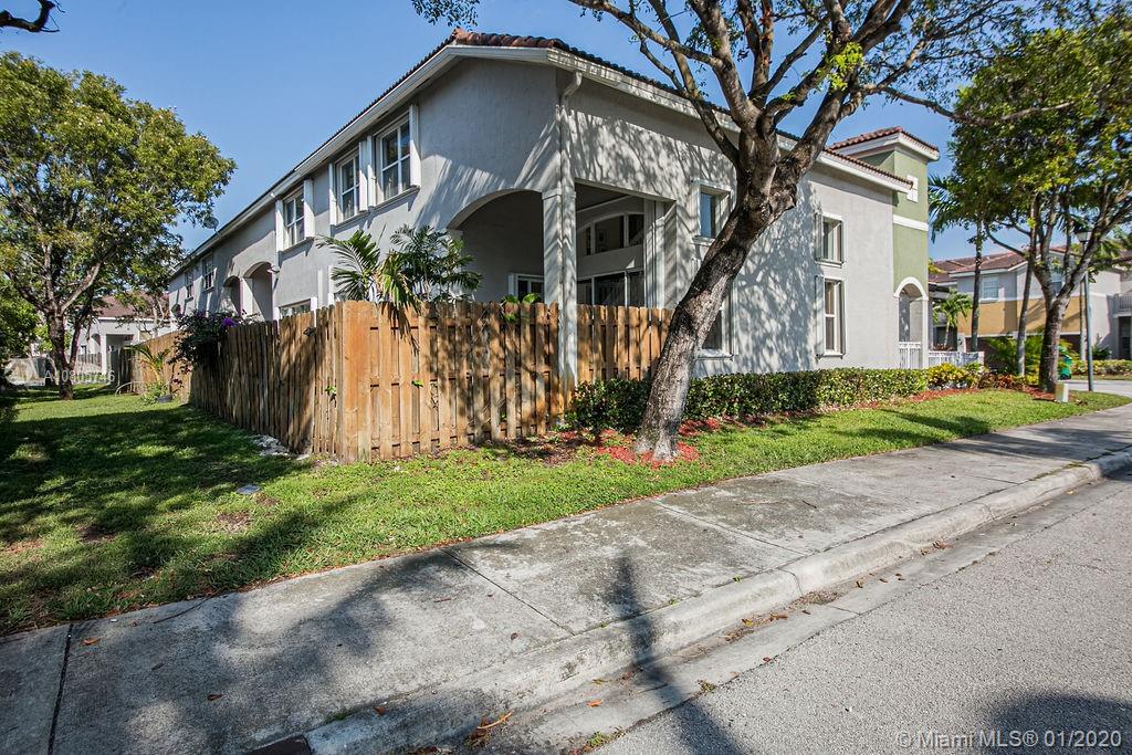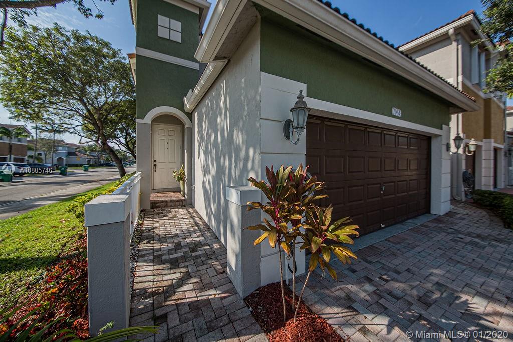 Beautiful 3 beds/3 full baths corner townhouse at gated community in Doral. Spacious, full of light layout with high ceilings, Accordion shutters in all windows and sliding doors. Tile flooring downstairs and laminated flooring upstairs. Kitchen with SS appliances and granite countertops. Downstairs bedroom with full bath and private entrance, perfect for in-laws, guests or home office. 2 large master suites style upstairs. New A/C. Designer landscaping outside and at paved, fenced patio. 2 car garage plus 2 cars at driveway. Plenty of visitor parking. Garage with extra storage. Exclusive and safe community, rarely a home for sale! Access to Islands of Doral Clubhouse. Next to Turnpike, new Legacy Park, new Glades Park, A+ schools, malls, restaurants and more. Easy to show!