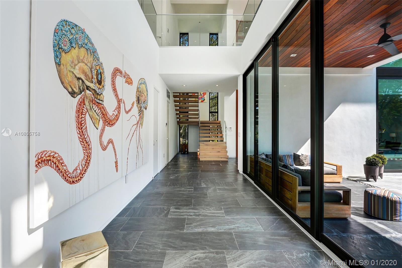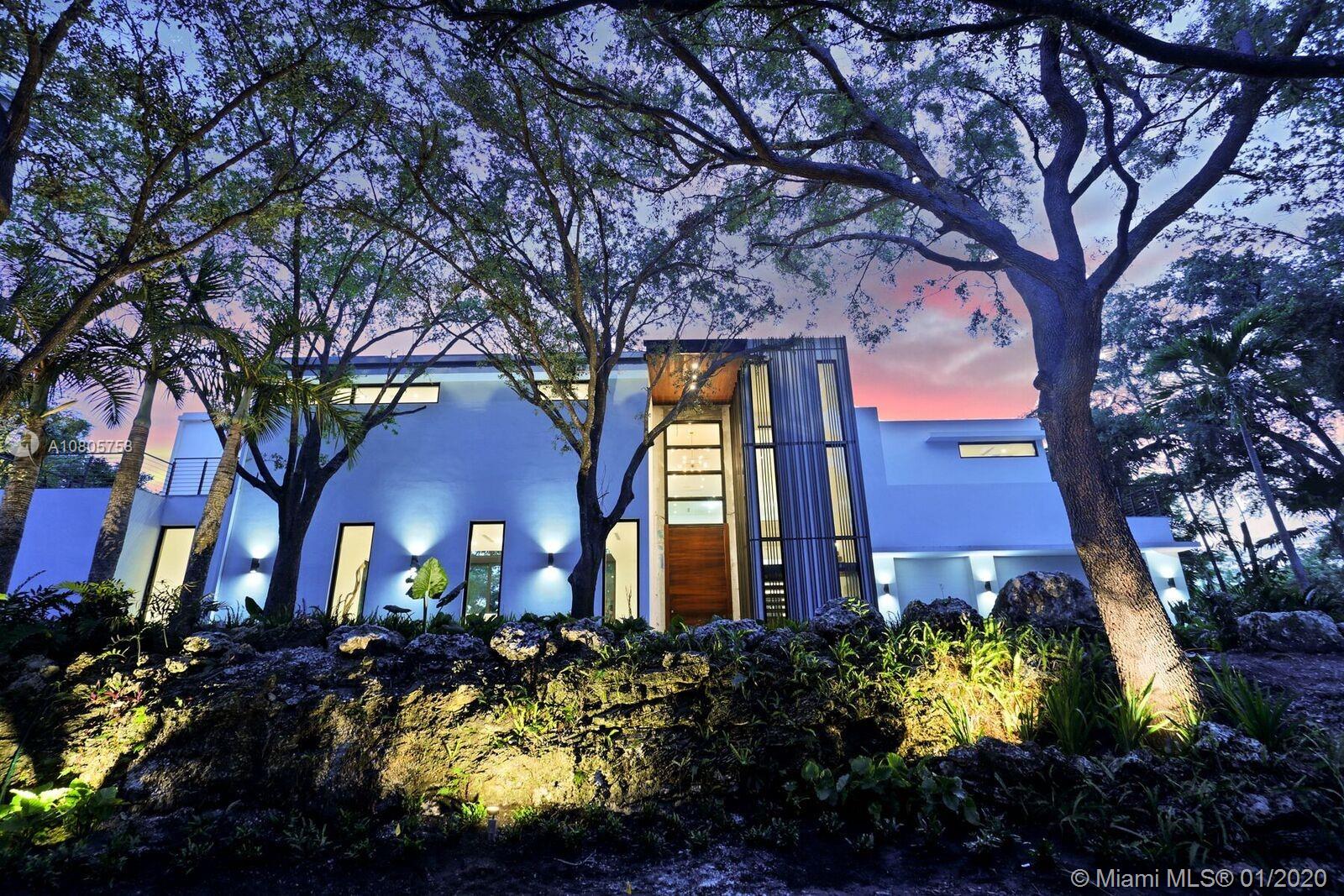 A truly unique “Modern Castle on the Rock” awaits you on the most picturesque and scenic location in Pinecrest. Built on a coral ridge, in a tree lined street, in most charming and exclusive neighborhood. Enter into open living spaces with over 25’ ceilings, abundance of light, stunning views to a vast professionally landscaped backyard and sparking pool. Highest standards include Italian kitchen and closets, German Miele appliances, natural stone from Spain, Oak wood floorings, and glass railings, pivot entrance door and much more. Total SqFt per appraisal of 8,989 & 7,095 Adj. Completed in 2019, ready to move in with electric blinds, Sonos Sound system, TV, Wi-Fi, et. Installed and set up for your convenience!