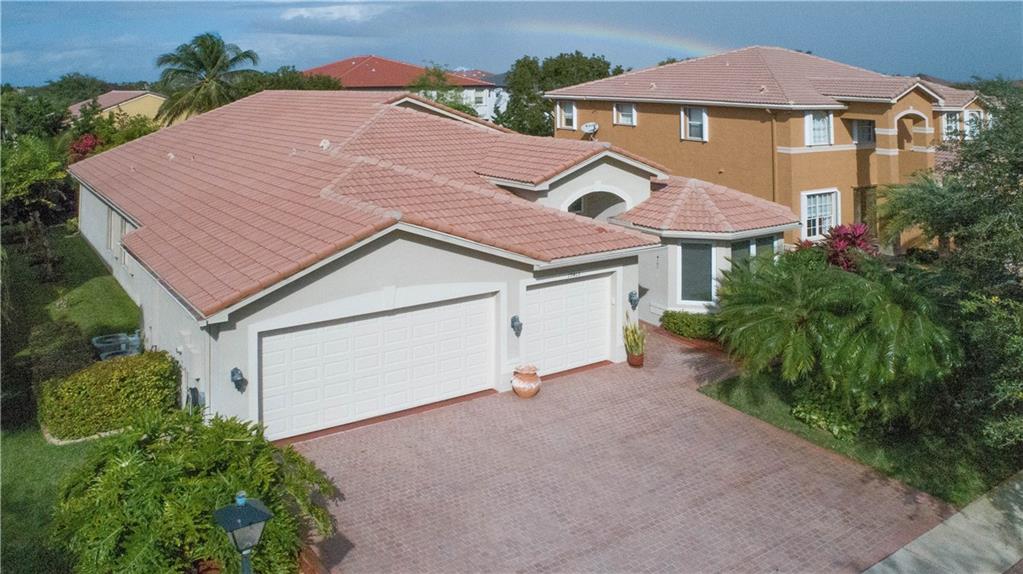 Bright and spacious one-story home. Upgraded kitchen with granite countertops, SS appliances, tile throughout the entire house, new A/C units, impact front door and windows, accordion shutters the rest of the house, lushly landscaping with fruit trees and travertine pavers.