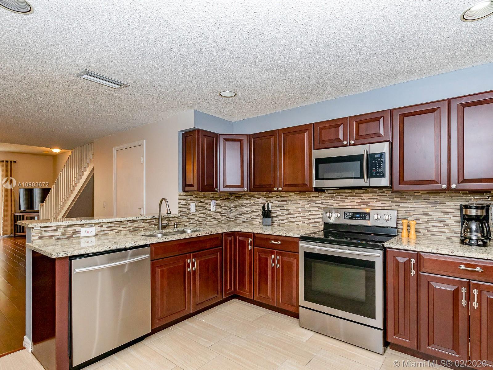 Move-in ready, beautifully maintained Townhouse in the wonderful family neighborhood of San Sebastian, Weston. 4 Bedrooms, 2.5 Bathrooms, remodeled master bathroom, engineered hardwood floor downstairs, oversized 1-car garage with plenty of storage/workspace, A-Rated schools, community pool and Tot-Lot, fully remodeled kitchen w/SS appliances, wood cabinets, granite countertop and tile floor, newer roof, freshly painted outside, slab patio, easy access to I-75, 595 Expy and 869 Sawgrass Expy.