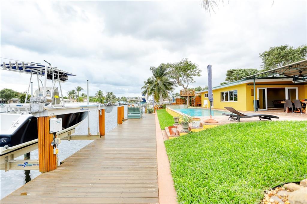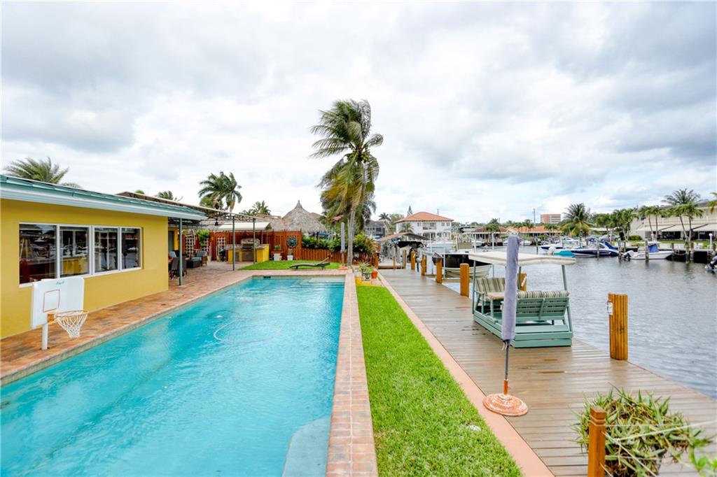 First time on the market in over 25+ years!!! Charming Ranch-Style home within Snug Harbor. 105' waterfront,Ocean Access, boat lift, floating dock on wide canal with .25 acres of land (105x105). 2-Car Garage with separate AC unit (currently converted into a work space/golf cart garage - can be changed back), Gourmet Kitchen with double oven, double sink. Vast backyard has Built In Summer Kitchen with gourmet Grill, Stove & Sink, Solar Heated Athletic Lap Pool, Spa, Tree Fort/Swing, Outdoor Shower, Banana & Coconut trees. New digital sprinkler system with separate zones,newer spa heater, newer gas hot water heater,newer 2 Trane AC units(2 zones) & high quality 2015 Metal Englert Roof. Oversized driveway, newer pavers fully installed.Room on side of the house for a boat trailer & car.