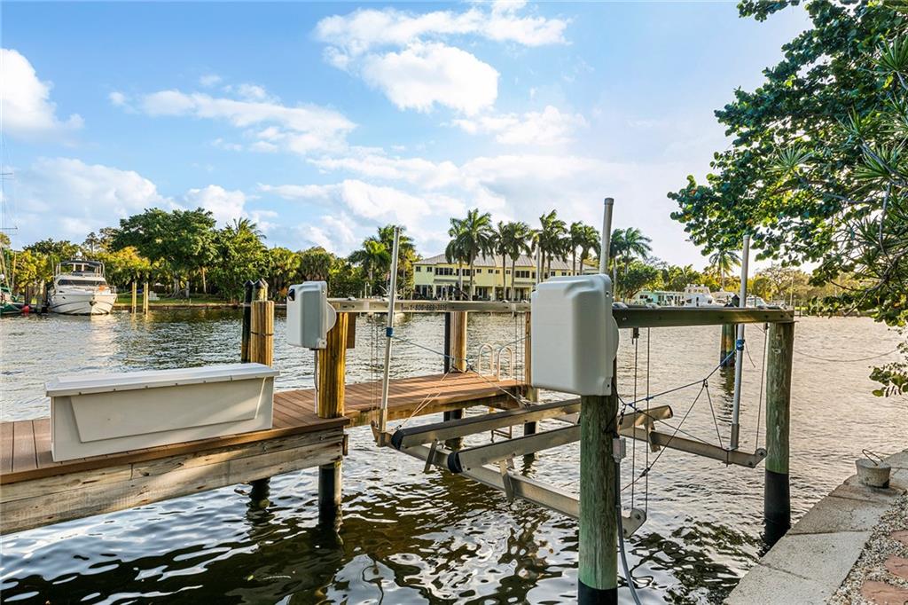 Rare opportunity to own a prized property w/ 95 feet on the New River! Awe-inspiring views of the constant & ever changing river parade are yours w/ this gated estate in the fabulous Sailboat Bend neighborhood. It's the perfect tropical oasis for buyers who want it all. Built in 1955, this spacious 4 bed 4.5 bathroom house has been completely & meticulously updated with impact windows and doors, barrel roof, composite dock, boat lift, chef's kitchen with gas range all commandingly situated on a sprawling 13,025 ft lot, nestled directly on the New River. This special home resonates the classic "Old Florida" vibe featuring a brick entry courtyard, two 2-bay garages, AC work room, salt water lap pool with marble patios & pathways, landscape lighting, mosquito system and freshly painted!!