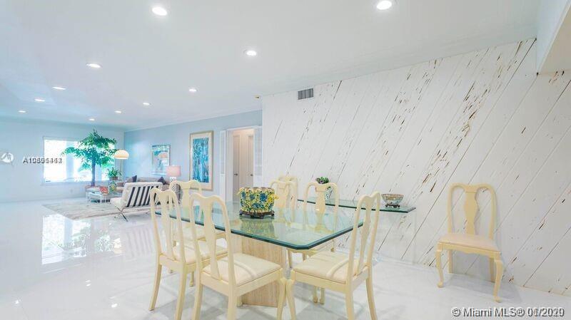Waterfront gem minutes to intra-coastal waterway and ocean. Enter through the circular Chicago brick driveway and lush landscaped yard, to find an open and bright 3 bedroom/2 bath +office 2,645 sq. ft. floor plan. Nestled in the guarded community of Biscayne Point, it was remodeled in 2018 - upgrades include chef's kitchen with stainless appliances, quartz counters, double oven, tons of cabinet space, white gleaming porcelain tile in living areas, hurricane shutters, impact glass windows/doors, decorator paint, base boards, modern master bath with glass shower enclosure and floating vanity. All electric wiring has been replaced and updated to code. Relax on the water in a tropical paradise complemented by dock, a landscaped pool area and screened-in patio. A boat owner's dream.