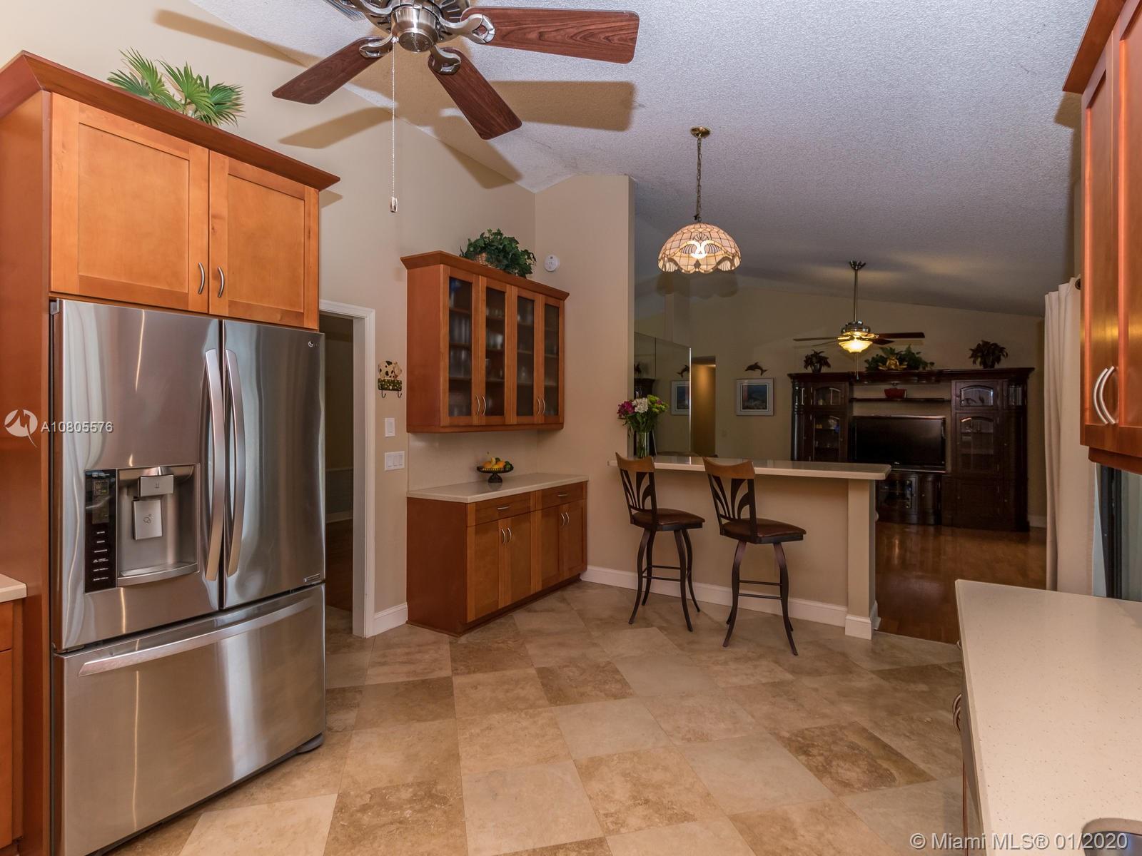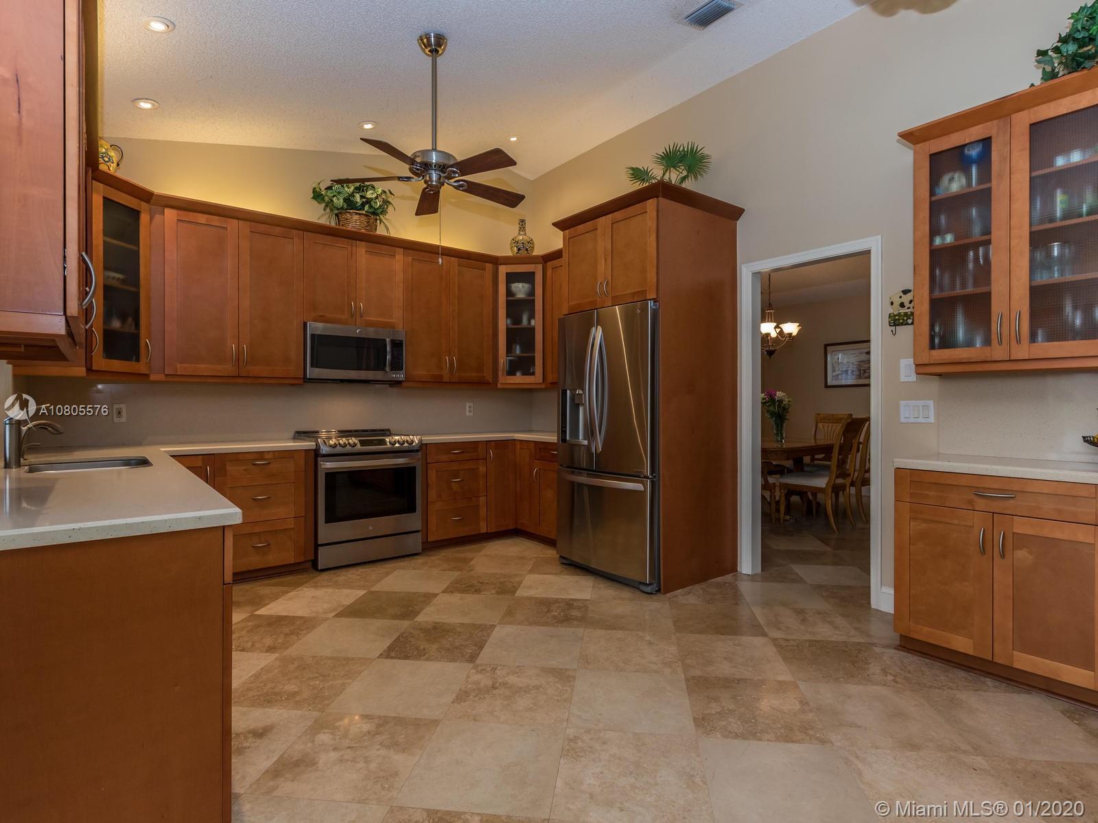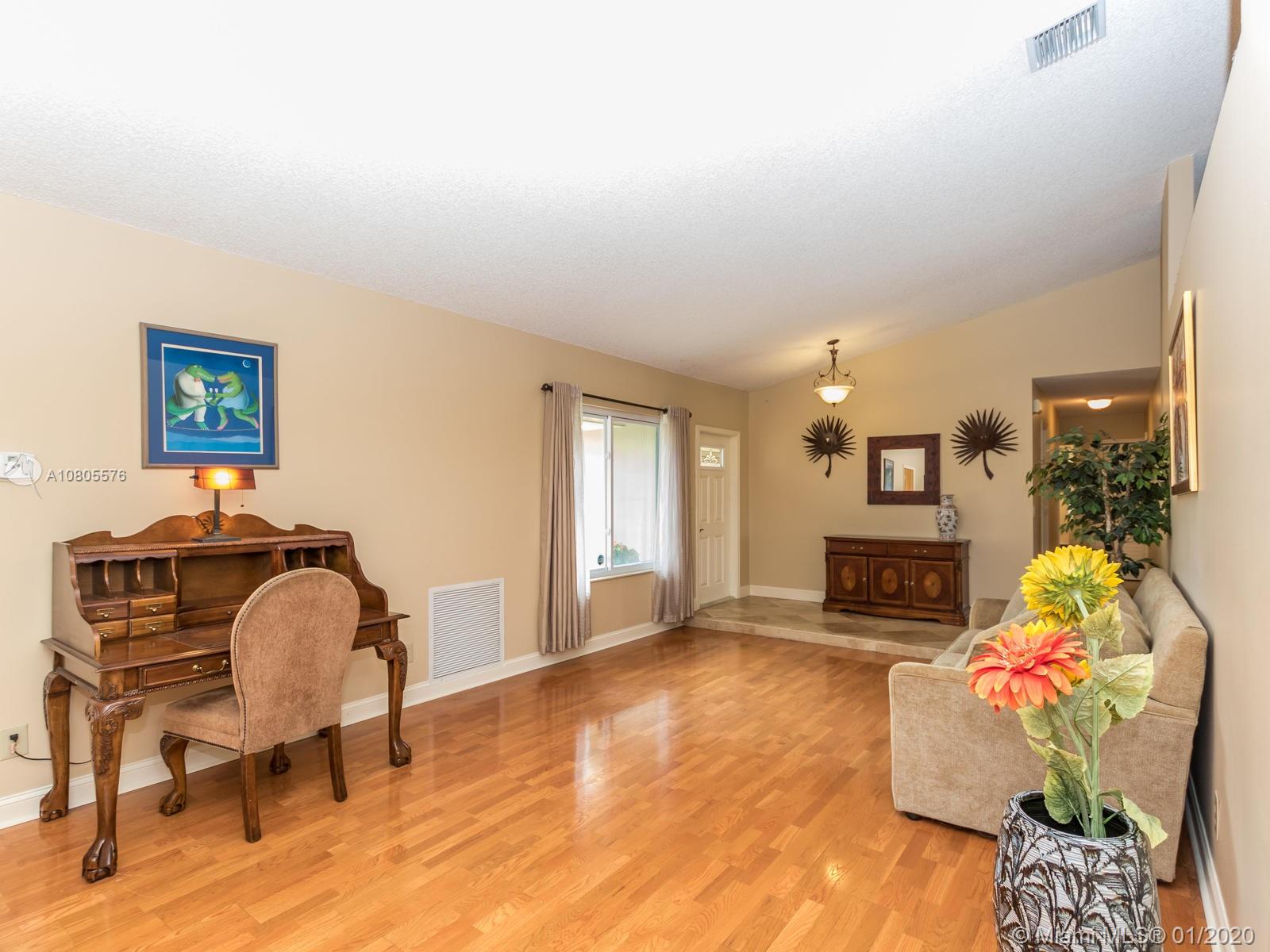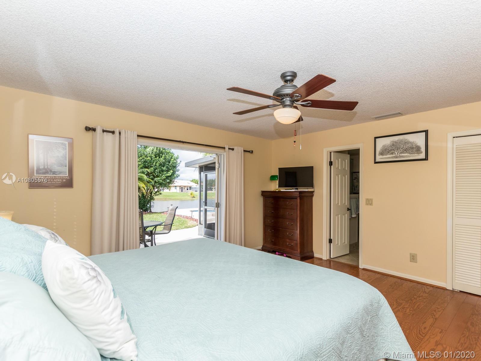 Enjoy beautiful sunsets on a wide lake in your private heated pool! Impeccable 4/2 in sought after Hawkes Bluff community of Davie w/an excellent floor plan. Separate formal living, formal dining and family room areas. Tastefully renovated with neutral colors, featuring wood & travertine floors throughout. Open kitchen offering custom cabinets, stainless steel appliances, quartz counters & a snack bar. Generous master suite w/spa like bathroom, walk-in closet & French doors overlooking the lake. Extra-large rooms w/deep closets. Excellent schools. Backyard offering an expansive covered screened in patio overlooking the lake and pool, perfect for entertaining! Hurricane shutter & impact windows for all openings. Must see..Wont last!