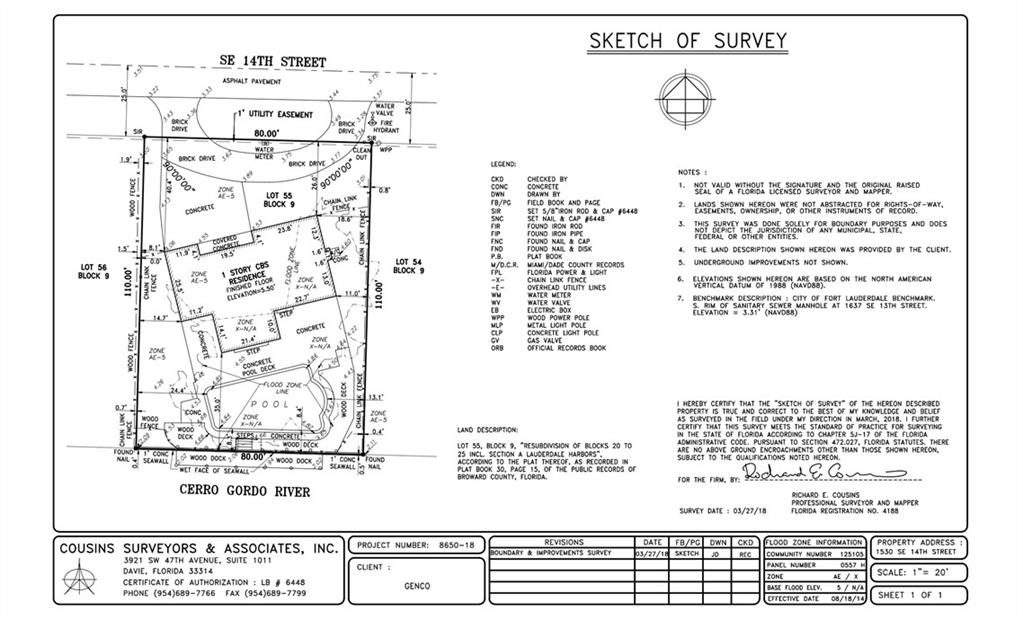 ATTENTION BOATERS & FAMILIES!!! EXCELLENT OPPORTUNITY TO BUY THIS WATERFRONT LAUDERDALE HARBORS PROPERTY ON 80' OF DEEPWATER & EITHER REMODEL EXISTING 1,752 SQ. FT. BUNGALOW OR CONSTRUCT A NEW, SPACIOUS, WEST INDIES STYLE DREAM HOME!! NO DETAIL WAS OVERLOOKED IN THIS METICULOUS, TIMELESS DESIGN, PERFECT FOR LIVING & ENTERTAINING!! THE COMPLETED BUILDING PLANS (INCLUDED IN THE SALE OF THE PROPERTY & AVAILABLE UPON REQUEST) FOR A 4 BED/5 BATH ARE READY TO SUBMIT TO THE CITY! THE LOT IS SITUATED ON A 150' WIDE CANAL WITH COVETED UNRESTRICTED OCEAN ACCESS JUST MINUTES FROM THE DOCK!! LOCATED CLOSE TO YACHT CLUB, LAS OLAS, SHOPPING, DINING, A-RATED SCHOOLS, & AIRPORT! **THE EXISTING 3 BED/2BATH POOL HOME ON SITE COULD FEASIBLY BE RENOVATED!! 14TH ST. IS APPROVED TO BURY POWER LINES UNDERGROUND!
