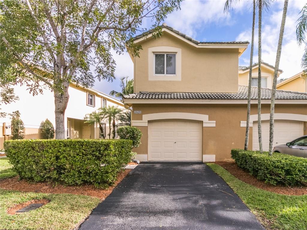 Amazing 4 bedroom corner townhouse with all IMPACT windows and a water view! Never worry about putting up shutters! Updated granite countertops in kitchen and new upgraded stainless steel appliances. Newer carpet in bedrooms upstairs and all tile downstairs. Oversized 1 car garage with room for storage. Screened porch with slate floor. Zoned for A rated Weston schools and the gated community has a pool and playground. Walking distance to Gator Run Elementary and Gator Run Park. Come see it today!