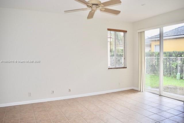 Versatile Foxtail Elite floor plan in the gated community of Savanna at Weston. Spacious master bedroom with slider to patio. Private master bath suite with roman tub, shower and dual sinks. This floorplan features a laundry room near the two secondary bedrooms. Enjoy a formal living and dining room plus a family room. Walking distance to the community pool, complete with heated lap pool, miniature golf, kid water park, playground and so much more. Spacious kitchen with plenty of cabinets. Neutral tile floors and wood like floors in all bedrooms.