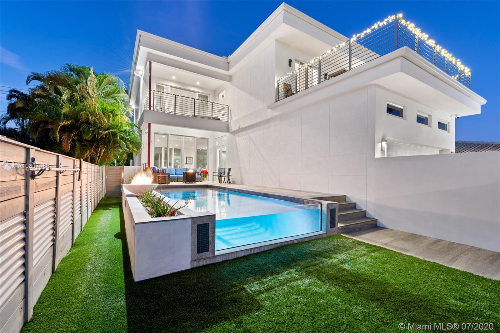 MODERN TWO-STORY HOME BUILT IN 2018, 3BR/3.5BA RESIDENCE IN THE HEART OF HOLLYWOOD LAKES OFFERS GRACIOUS LIVING SPACES & ENDLESS OPTIONS FOR GATHERINGS BOTH INSIDE & OUT, IT’S A DREAM HOME FOR ENTERTAINING & FAMILY LIVING. SUN-SPLASHED LIVING AREAS WITH WALLS OF GLASS. A CHEF-STYLE KITCHEN FEATURES A LONG CENTER ISLAND, AMPLE COUNTERS TOPPED IN QUARTZ, TOP-OF-THE-LINE APPLIANCES & ADJACENT DINING ROOM. THE SPACIOUS MASTER SUITE BOASTS A SUMPTOUS BATH WITH TUB & WALK-IN SHOWER & A PRIVATE BALCONY. OUTDOOR FEATURES INCLUDE STATE-OF-THE-ART INFINITY EDGE GAS HEATED POOL, COVERED TERRACE, ROOF TOP TERRACE AND BUILT-IN SUMMER KITCHEN. CUSTOM BUILT SOLID WOOD STAIRCASE WITH CUSTOM BUILT GLASS RAILING, PORCELAIN FLOORING AND TWO CAR GARAGE.