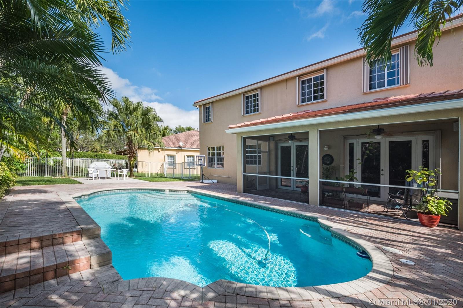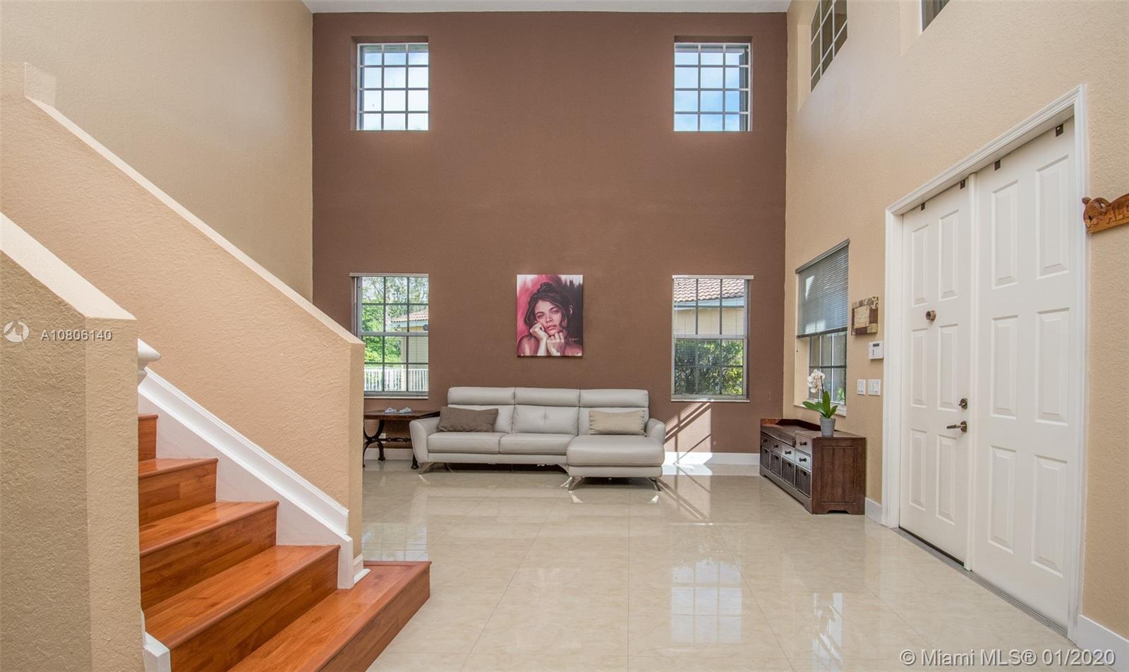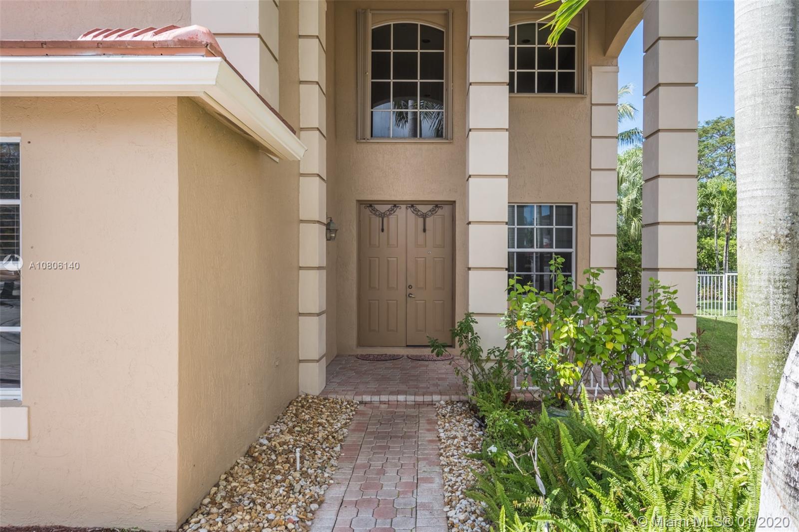 Tucked on a quiet cul de sac in The Ridges at Weston. Brand New Roof (plus gutters) 2019 * Brand New 24x24 white porcelain tile floors in living areas (2019) New White kitchen with stainless steel appliances center island and countertops. Spacious six bedrooms plus den and four full bath. Full bed and bath first level. French door to screened paver patio and pool with fully fenced yard with privacy landscaping. Paver driveway, accordion protection 2nd level. New Washer/Dryer. Newer A/C, hurricane proof garage door. Outdoor speakers. Ridges amenities include a Community Pool, clubhouse, basketball court, a soccer field, playground, 24 hour security and more.