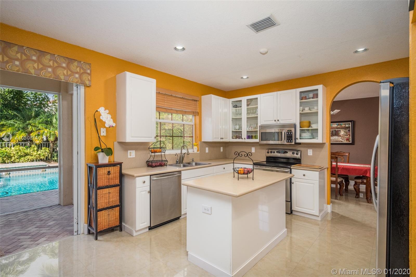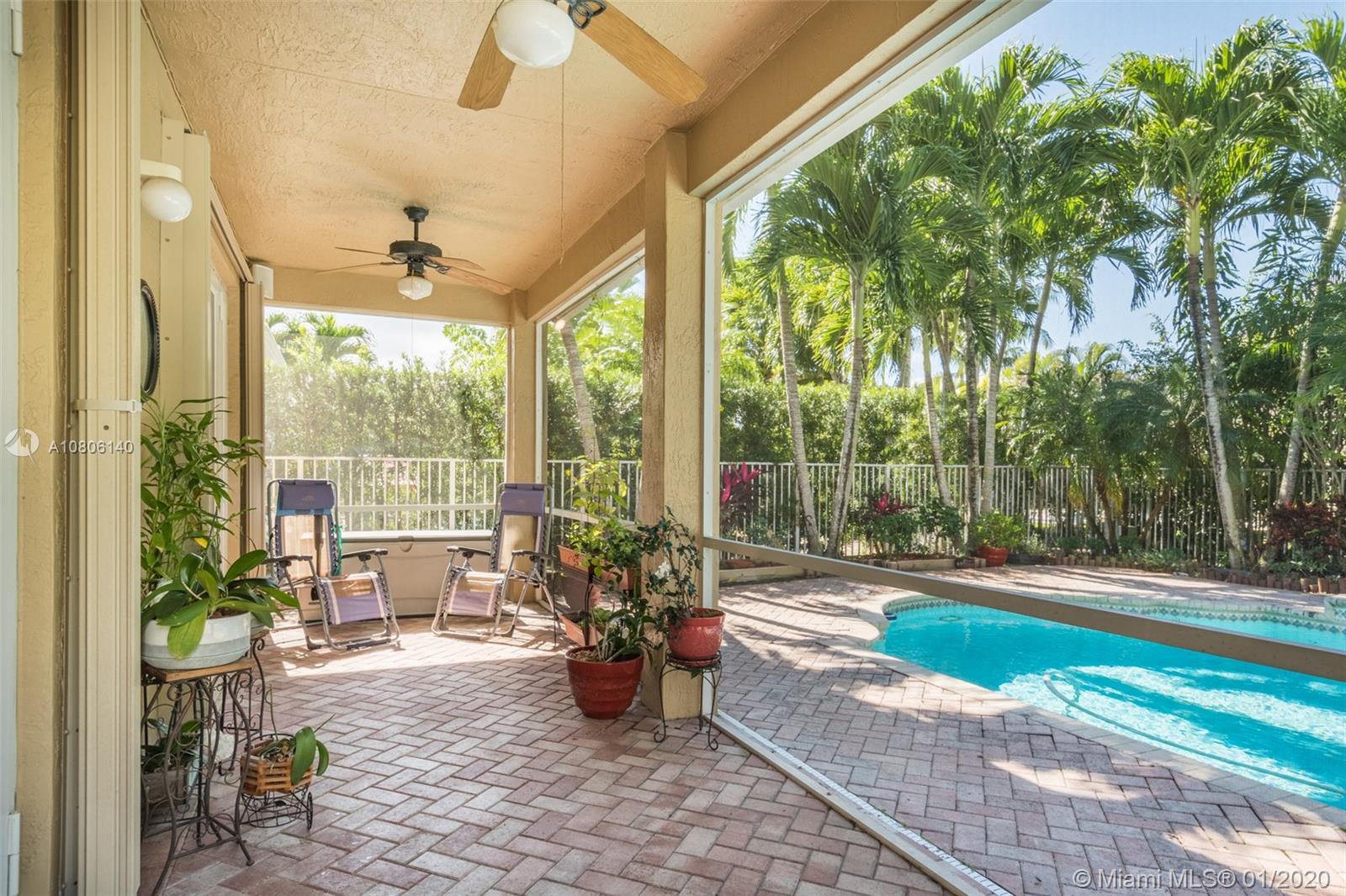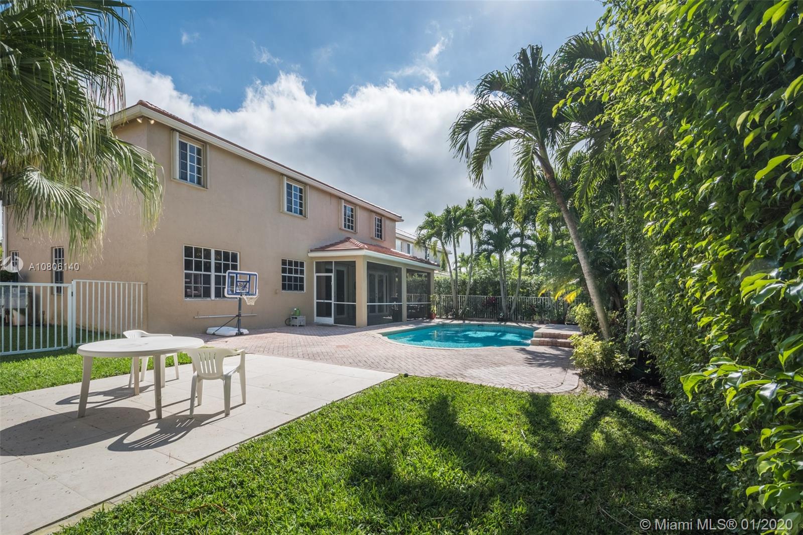Tucked on a quiet cul de sac in The Ridges at Weston. Brand New Roof (plus gutters) 2019 * Brand New 24x24 white porcelain tile floors in living areas (2019) New White kitchen with stainless steel appliances center island and countertops. Spacious six bedrooms plus den and four full bath. Full bed and bath first level. French door to screened paver patio and pool with fully fenced yard with privacy landscaping. Paver driveway, accordion protection 2nd level. New Washer/Dryer. Newer A/C, hurricane proof garage door. Outdoor speakers. Ridges amenities include a Community Pool, clubhouse, basketball court, a soccer field, playground, 24 hour security and more.