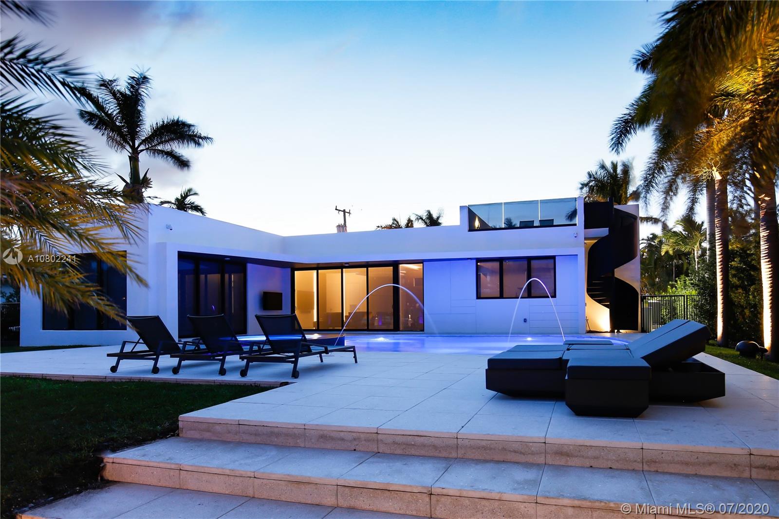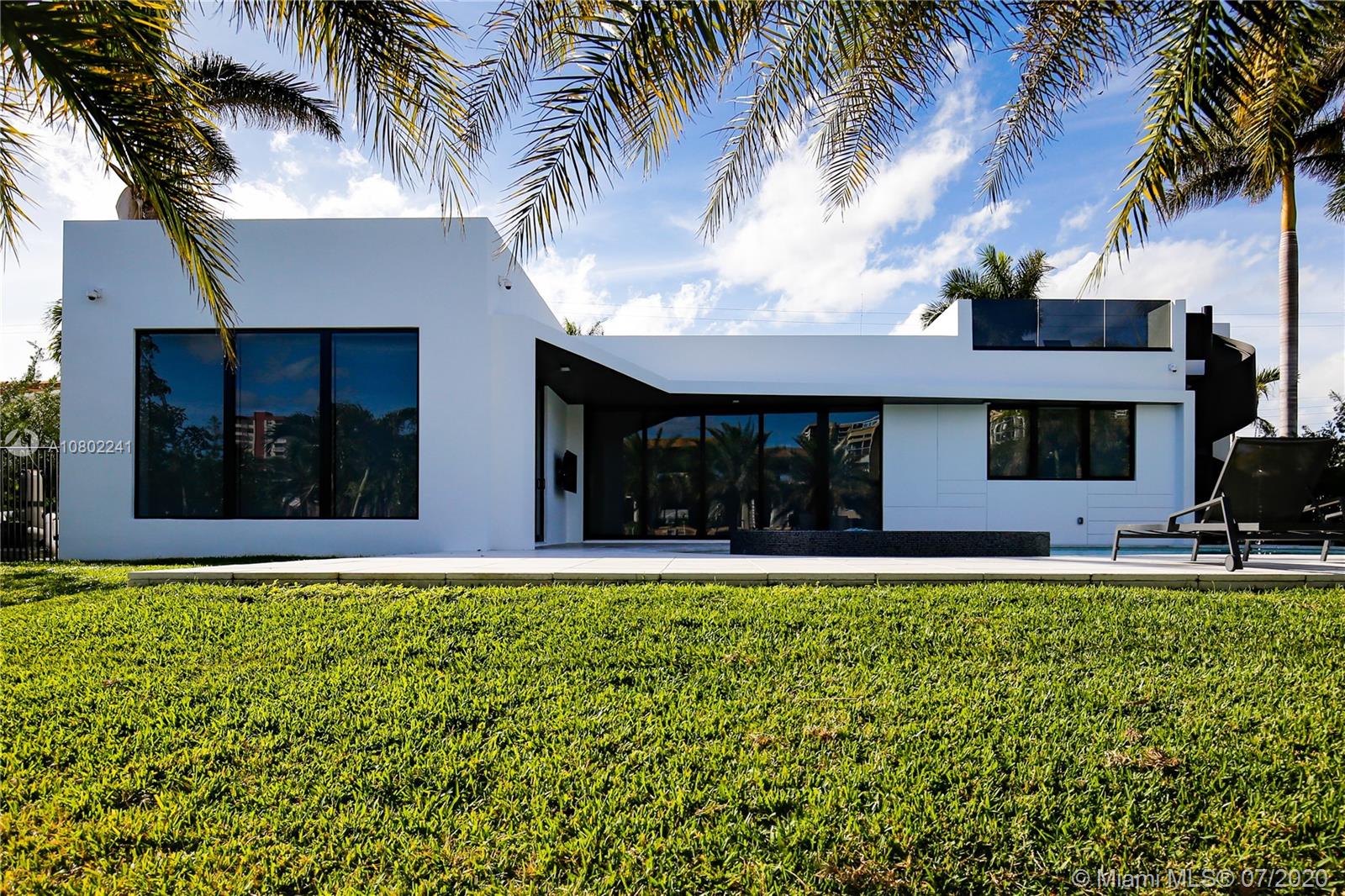 Ultra-modern single story architectural masterpiece in prestigious Golden Isles community. Meticulous no expense spared construction featuring impact windows, reinforced concrete roof, 500 Sq. Ft. rooftop terrace, large beach area pool with raised spa. 85' modern concrete dock with lights, dual power and water. The interior features 4 bedrooms and 3 bathrooms where 2 are primary bedrooms with en suite bathrooms, fully smart Control4 home with LED lighting, interior and exterior sound system and televisions, electric blinds and security systems all controlled from your phone or iPad. Just 1 block to the intercoastal and no fixed bridges to the ocean. Virtual Showing: https://vimeo.com/445824884