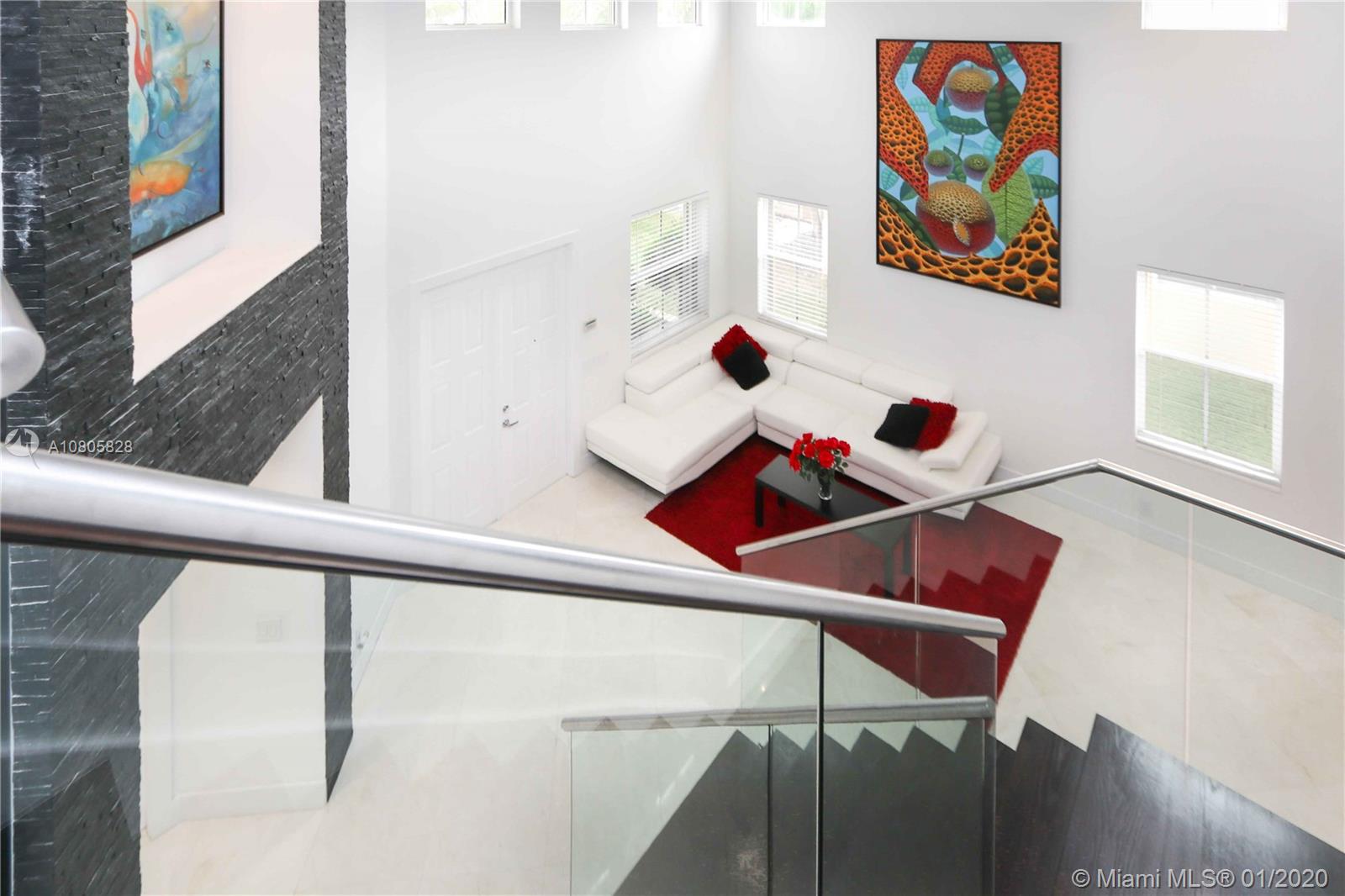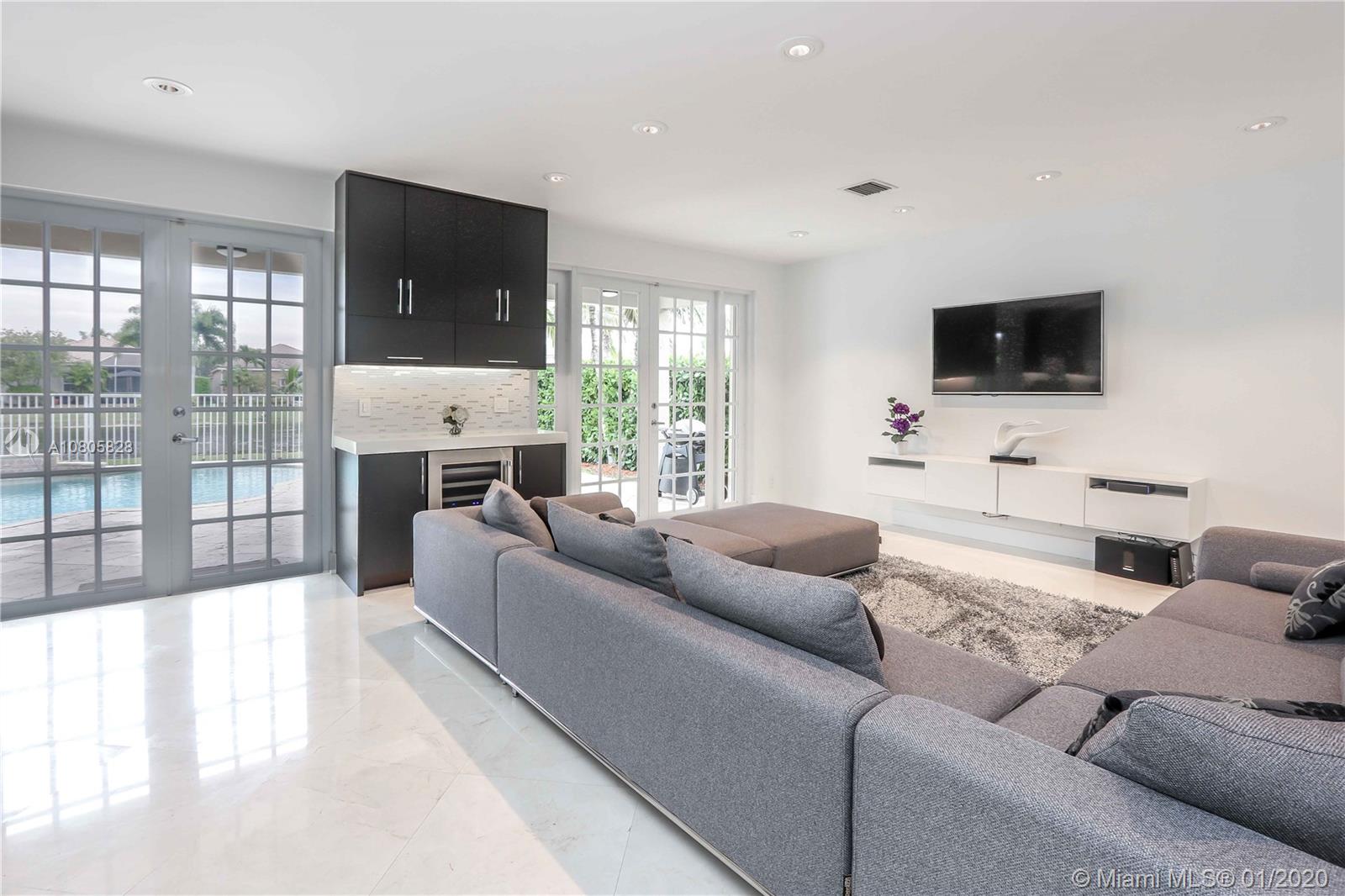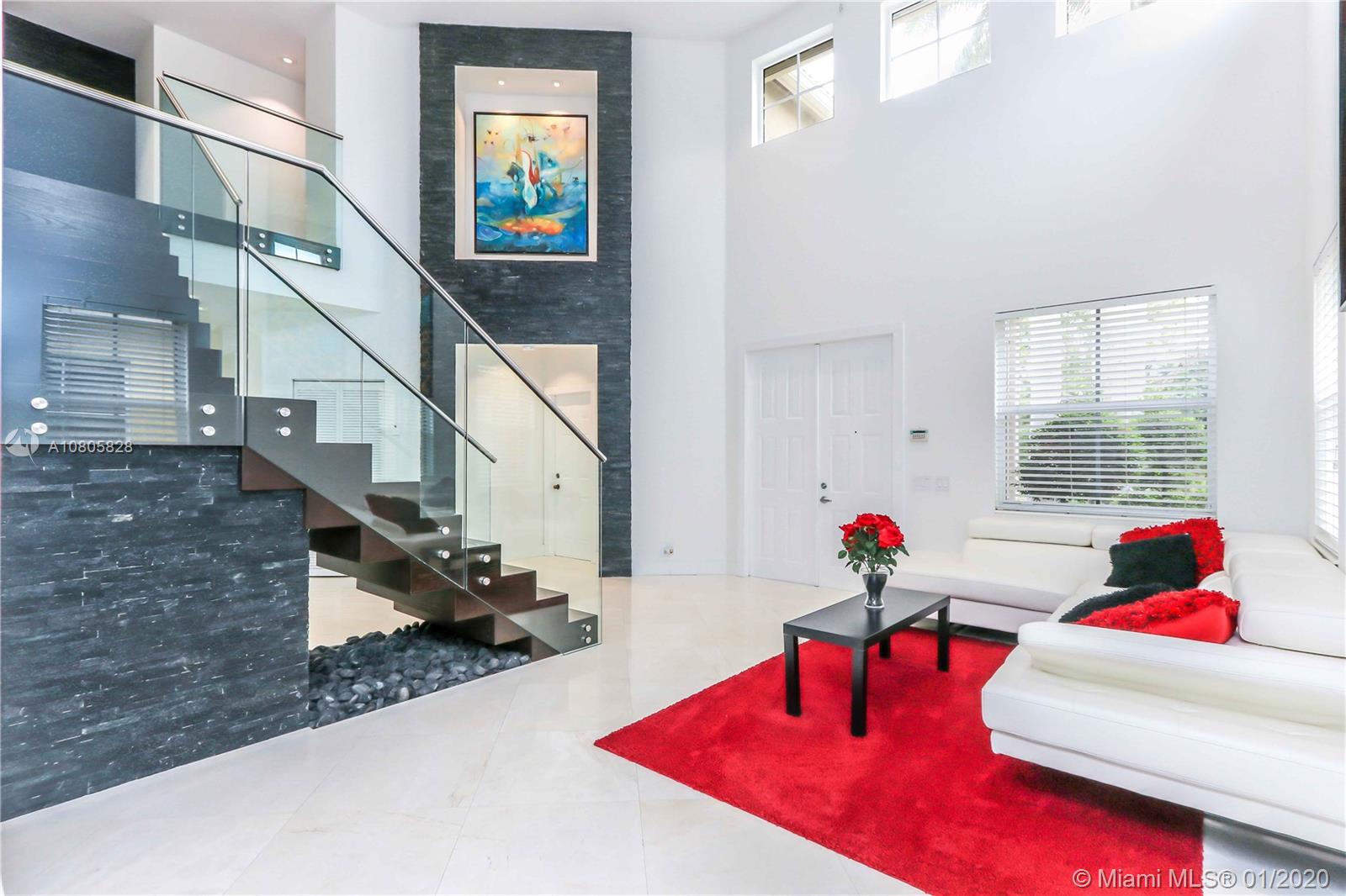 A real modern waterfront pool gem in sough after gated Savanna in Weston.This spectacular, fully renovated 2-story home is the real deal with the wow factor from the moment you step into the bright living room. The double height ceiling is enhanced with the large format marble floors and the stunning free standing glass railing staircase w/dark wood steps & stainless steel finishes. The spacious modern italian kitchen w/stainless steel appliances & siltstone counter is the perfect family gathering with spacious center island & induction cooktop. All bathrooms are superb modern high-end w/clear glass shower, floating vanities & more. This luxurious dream home has the perfect floor plan with 1 full suite BR in the first floor & resort style backyard w/free form pool & infinity water views.