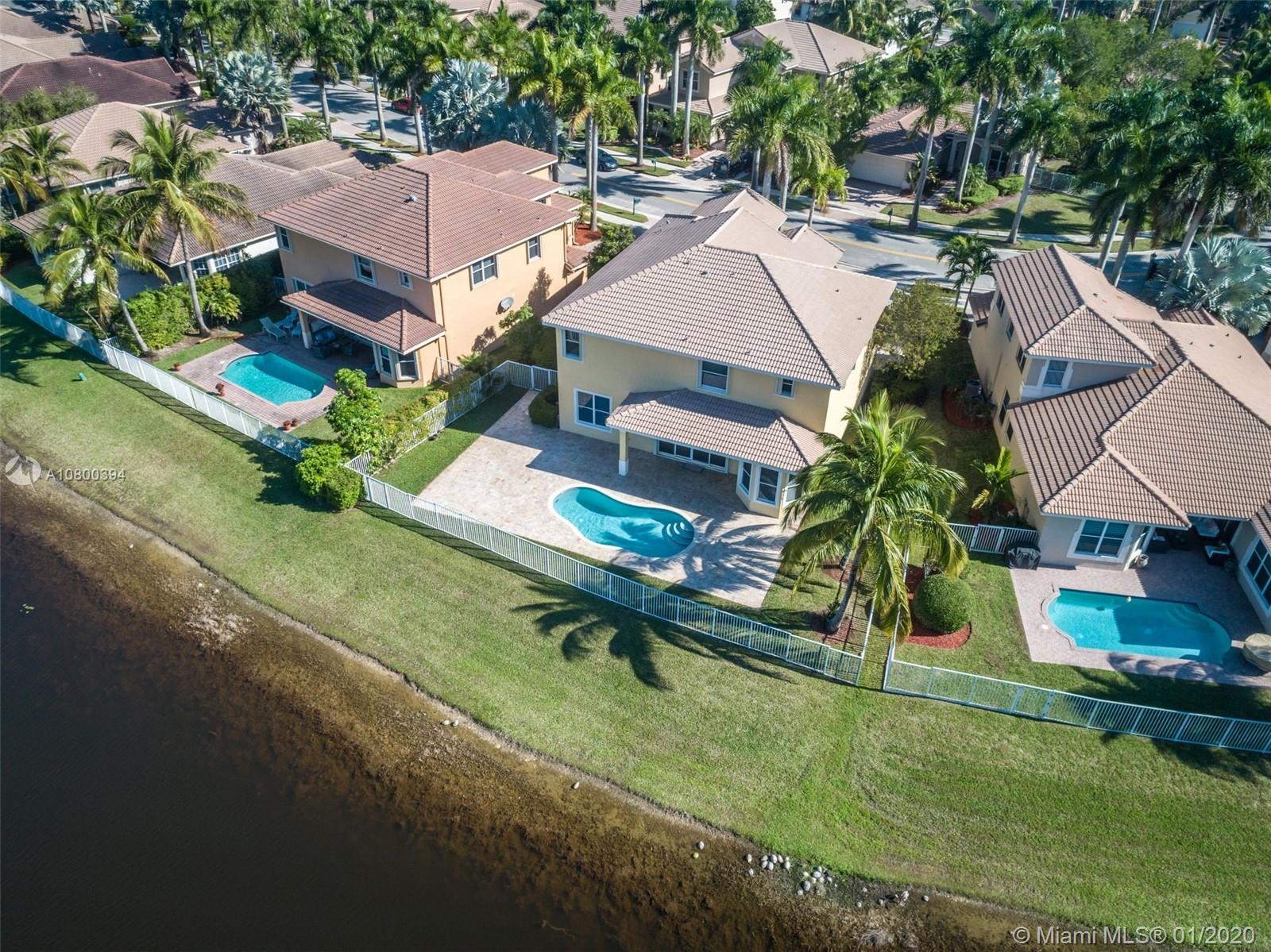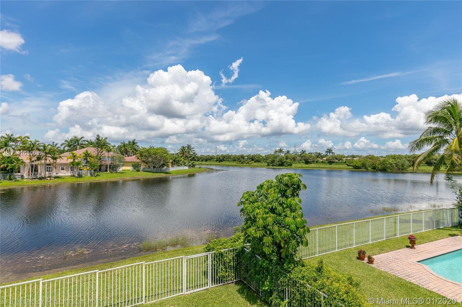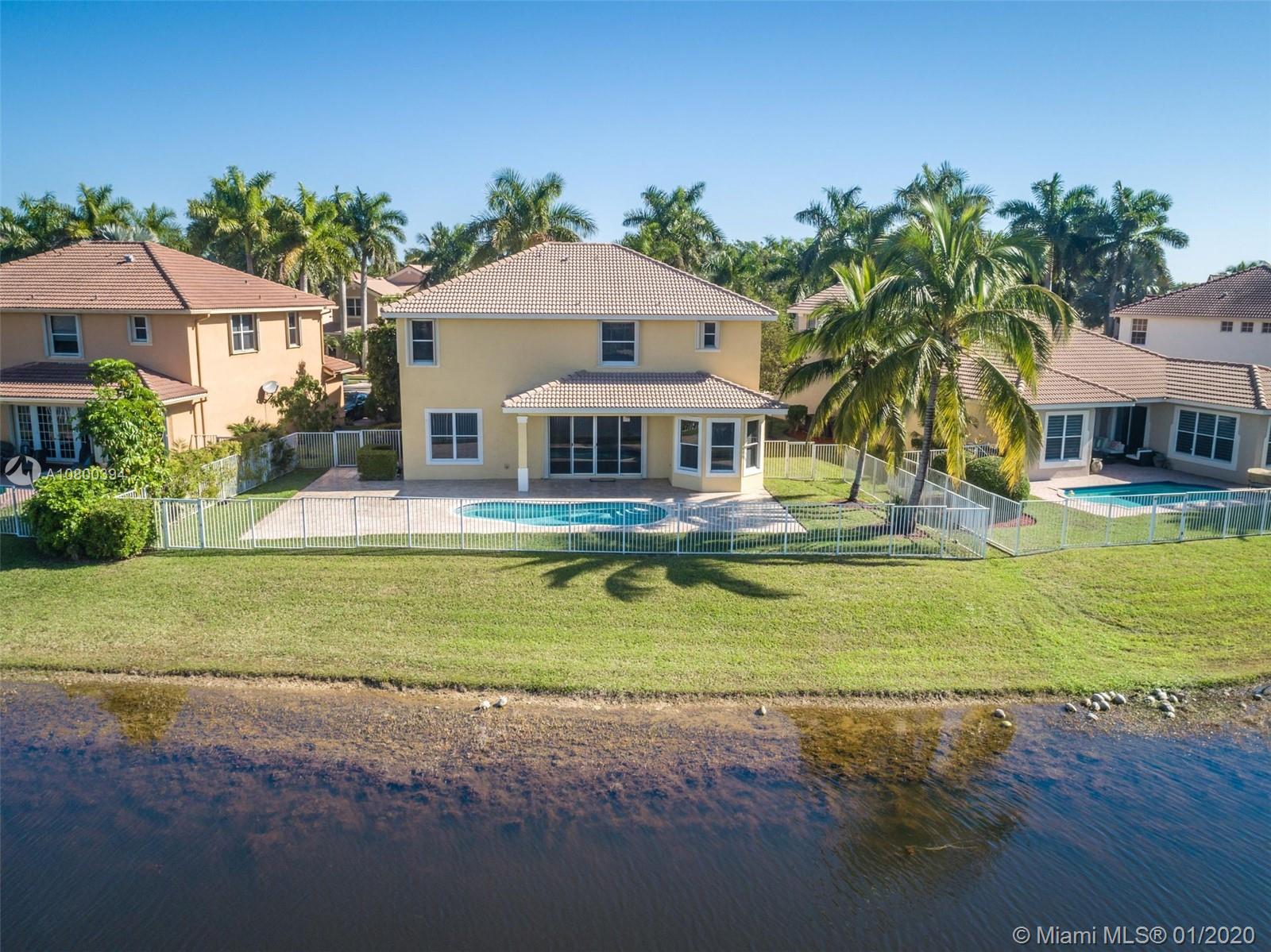 Come home to Weston Hills Country Club; great house with a breathtaking lake view and a relaxing pool (fully fenced); 7 bedrooms, 4 full baths, and a spacious den/play area/office/second family room! One bedroom and full bath located in the first floor, Master and 5 more rooms in second floor. All flooring is tile and bamboo, no carpets! Master bedroom has two walk-in closets, and all other second floor bedrooms have walk-in closets! First floor includes the formal living/dining areas, family room overlooking pool and lake, and a beautiful white kitchen with breakfast area, granite counter-tops and SS appliances. Over-sized lot and 3 car garage, plus a large driveway with space for six additional cars! BCPA indicates 6 BR but there are 7 with windows and closets, all original construction.