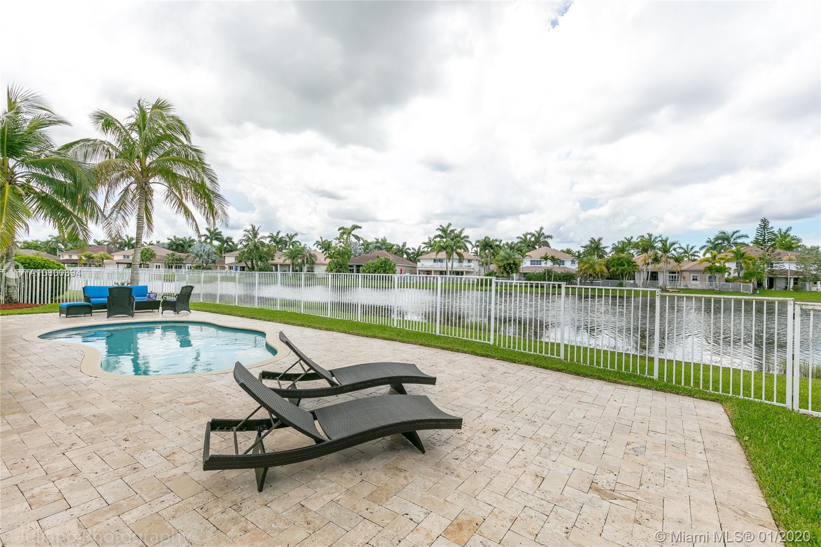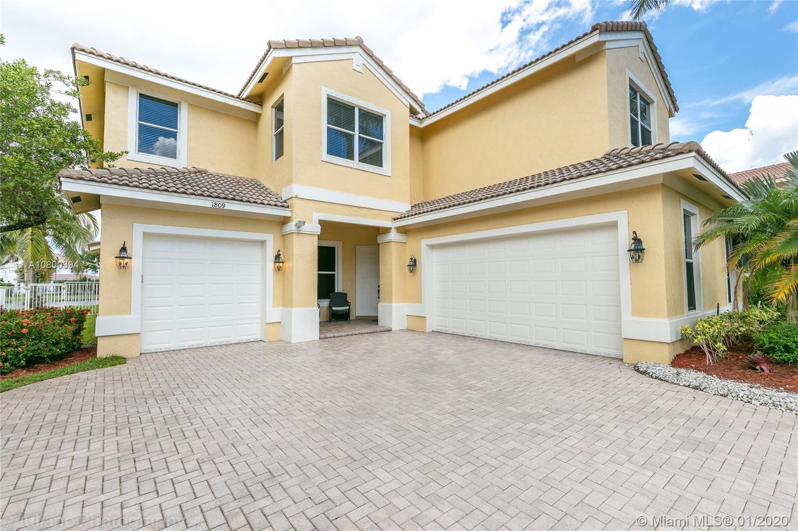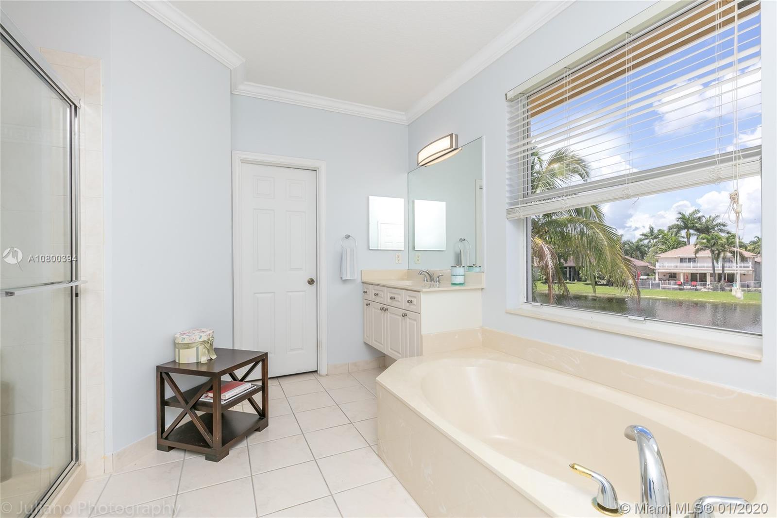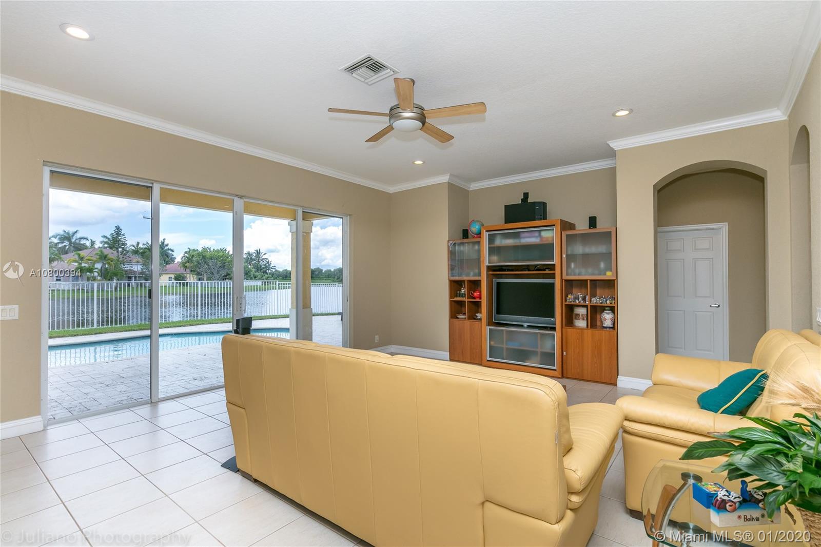 Come home to Weston Hills Country Club; great house with a breathtaking lake view and a relaxing pool (fully fenced); 7 bedrooms, 4 full baths, and a spacious den/play area/office/second family room! One bedroom and full bath located in the first floor, Master and 5 more rooms in second floor. All flooring is tile and bamboo, no carpets! Master bedroom has two walk-in closets, and all other second floor bedrooms have walk-in closets! First floor includes the formal living/dining areas, family room overlooking pool and lake, and a beautiful white kitchen with breakfast area, granite counter-tops and SS appliances. Over-sized lot and 3 car garage, plus a large driveway with space for six additional cars! BCPA indicates 6 BR but there are 7 with windows and closets, all original construction.