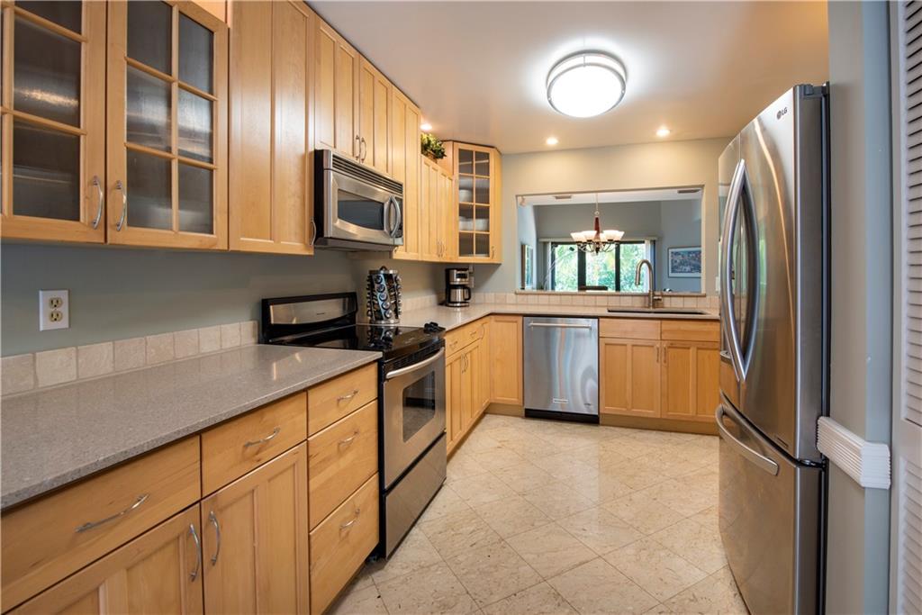 Large 2 bedroom townhouse overlooking the south fork of Middle River. Striking architectural details including vaulted ceilings with exposed rough hewn framing. Many updates throughout including new AC in 2017, upgraded electric, most impact windows and doors. Living room slider leads to generous patio taking in the river and pool views. Walking distance to Wilton Drive, this secluded enclave is lushly landscaped with a total of just 10 town homes.