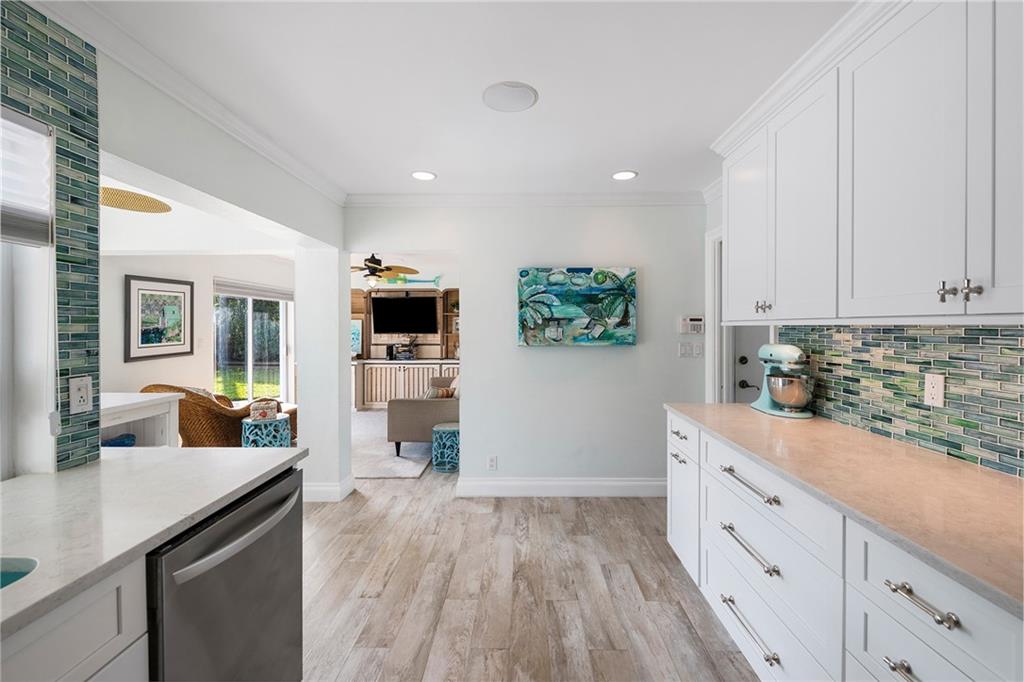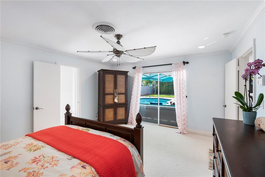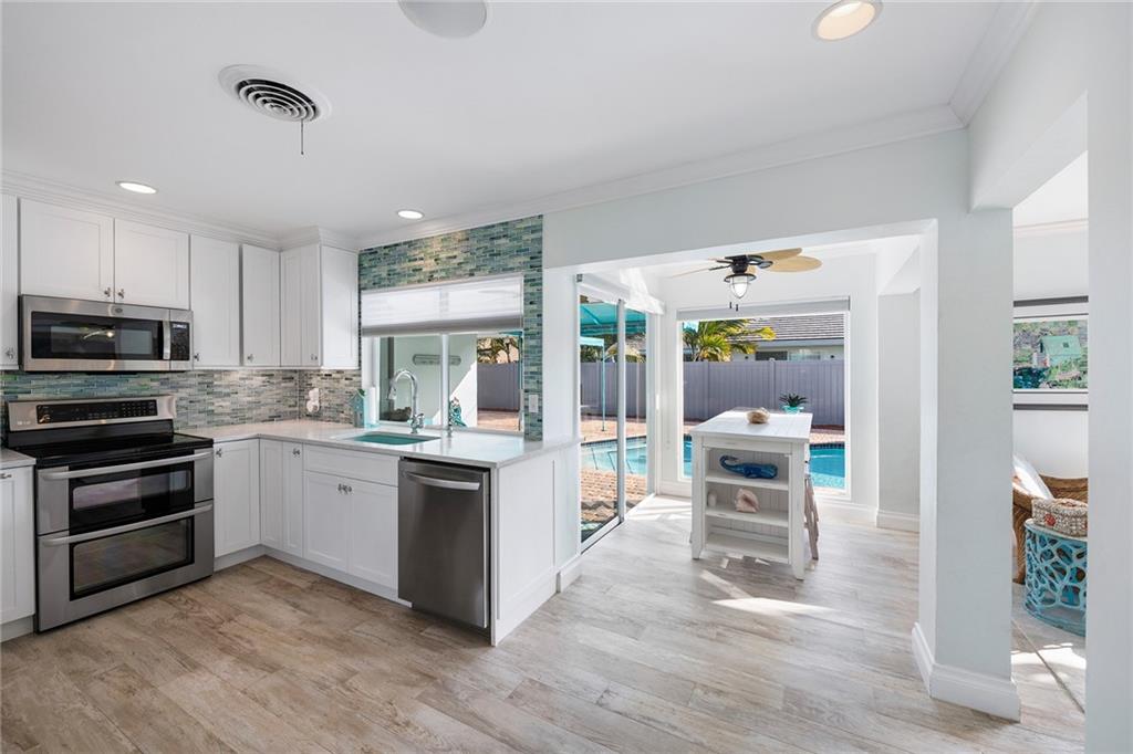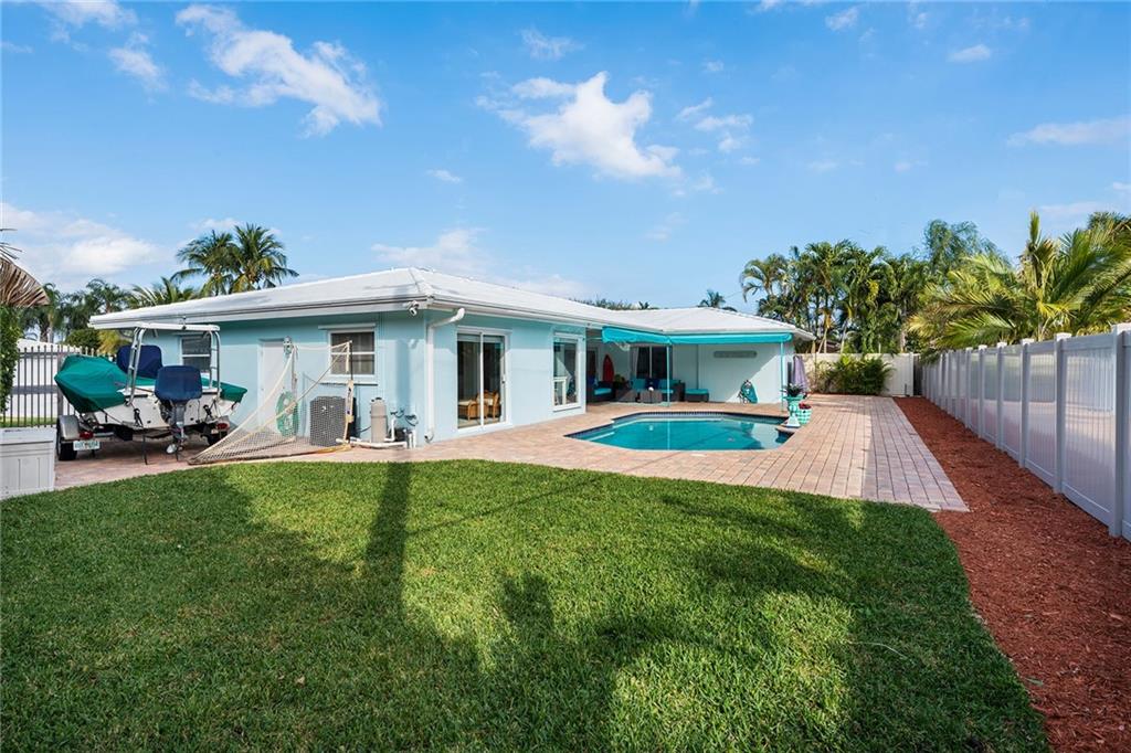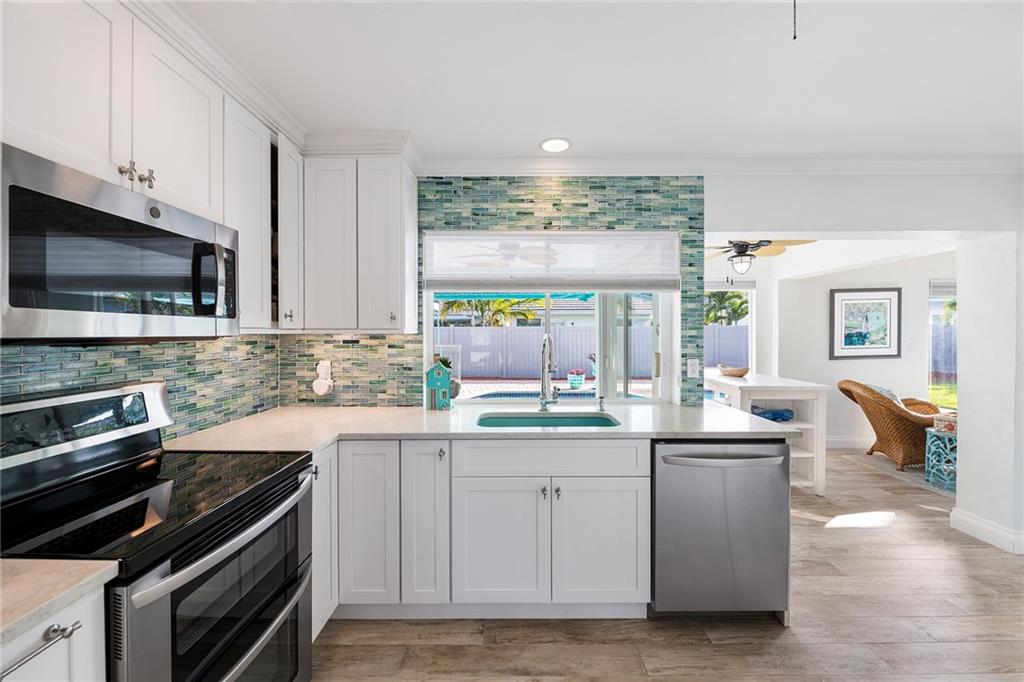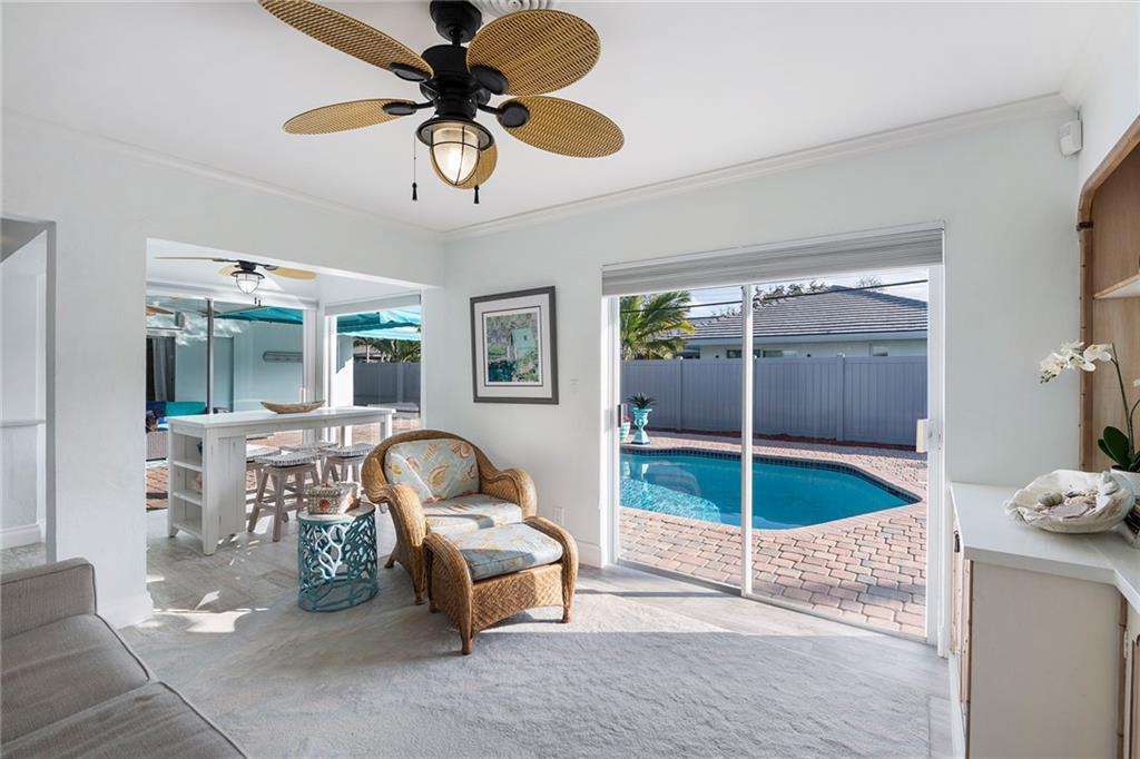 Coastal style 3 Bedroom, 2 Bath with family room and office with amazing patio and pool area on prime cul-de-sac lot in Coral Ridge Country Club! Renovated Kitchen with shaker-style white kitchen cabinetry with stainless appliances and quartz countertops. Updated bathrooms. Brick paved driveway that accommodates 2+ cars plus space to store small boat in backyard. Impact windows and doors along front of home, rest of windows and doors have hurricane shutters. AC is 2 years old. Extremely well maintained home! Great natural light!