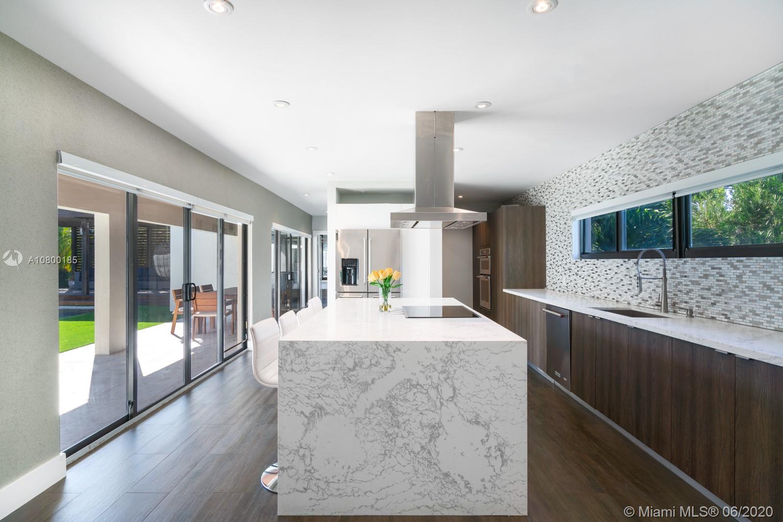 Sleek & elegant, this contemporary pool residence epitomizes indoor outdoor living. Completely renovated in 2017 along with a spacious newly constructed expansion, the home features all new plumbing, electrical, roof, impact windows, pool/equipment, AC system and much more. Masterfully designed to support both entertaining and family living, the light-filled open floor plan includes a new modern kitchen that opens up onto the patio. The private master suite features a walk-in shower, oversized soaking tub, and dramatic 13.5 Ft ceilings. Notable appointments also include marble/Italian porcelain flooring, Kohler/Hansgrohe fixtures, and quartz countertops. Prepare to fall in love with this one-of-a kind home in the highly desirable neighborhood of Miami Shores.