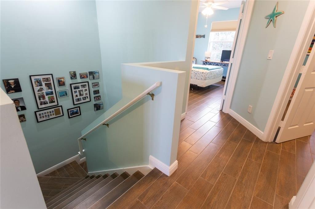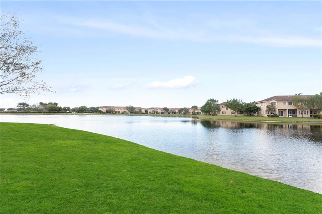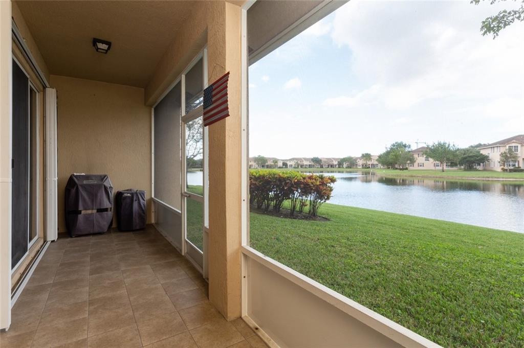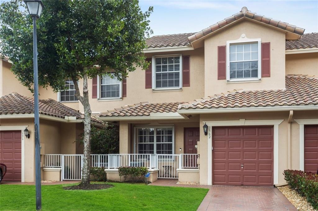 Move-in ready 3 bedroom 2 1/2 bath, 1 car garage townhouse on lake and cul-de-sac street. Home is painted in soft beach colors, ceramic tiles on first floor and wood tiles on stairs and 2nd floor. Home has crown moldings and plantation shutters. The eat-in kitchen has newer SS appliances, wood cabinets, and granite countertops. Big living area with den, in addition, you will find even more living space on the oversized covered and screened in patio with lake views. Master bedroom has high ceilings as well as 2nd bedroom with Jack and Jill bath attached. Laundry room with tub, cabinets and 2 closets. Accordion shutters & alarm system. Community pool is only a couple steps away. Ample parking in driveway and guest parking right across. Owners also includes an ASH home warranty for the buyer.