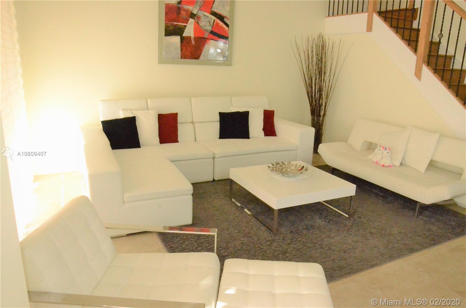This beautiful corner townhouse has 4 bedrooms and 3 and a half bathrooms, one of the rooms is located on the first floor. The house was only used as a holiday home is also completely remodeled (Tile floors on the first floor, wooden floors on the second floor and stairs, only carpet in the rooms. it is located in a very quiet complex, especially for families with children, less than 0.5 from the beautiful Doral Legacy Park. The property is like new, What do you are waiting for? Come and Fall in love!!!