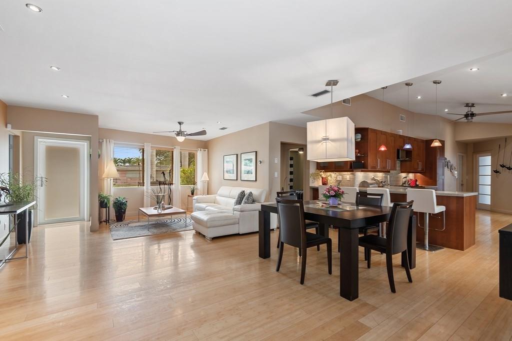 Working from home? This beautifully updated, and smart home enabled Coral Ridge pool home is perfect! The Master suite offers a generous bonus room for office, sitting area or den. Master features tray ceilings, walk-in closet, master bath with separate walk-in shower and tub. Third bedroom also functions nicely as office so everyone has privacy! Updated open, kitchen with gorgeous quartz counters and stainless appliances, vaulted ceilings, large family room with tray ceilings, bamboo flooring throughout living areas. Second bedroom with en suite bath. Tropically landscaped pool area, covered sitting area just outside the kitchen and family room for outdoor living and entertaining. Two Car Garage, large circular drive. Convenient to Beaches, Shopping, Restaurants & More!