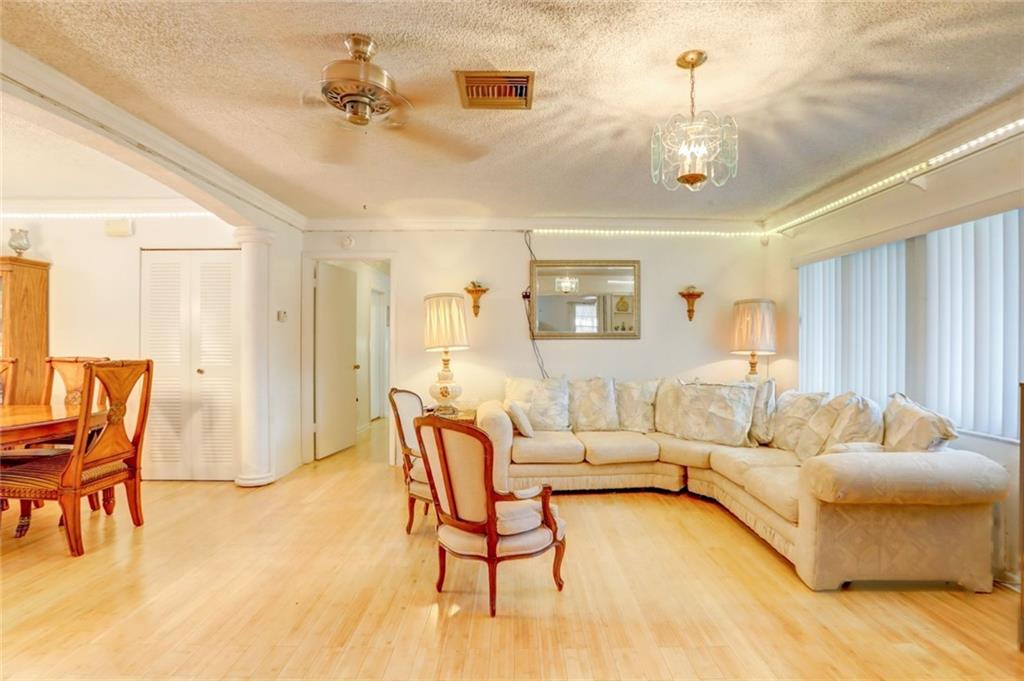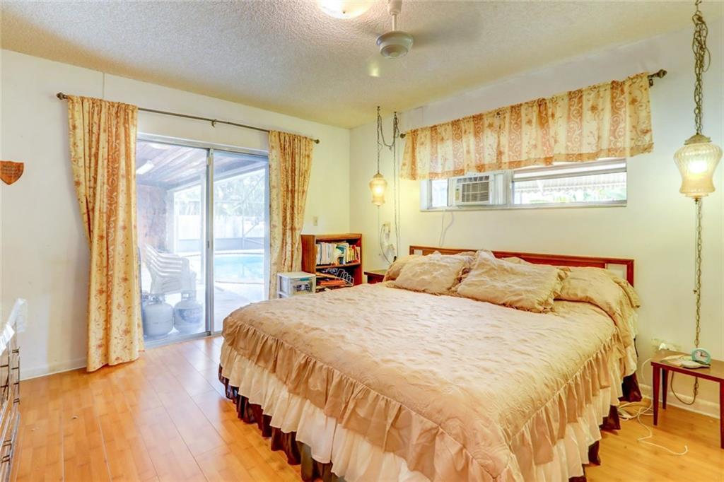 Fabulous location in desirable Palm Aire Village. Spacious home with 4 large bedrooms, 3 full bathrooms and pool with high screened enclosure. Flowing floor plan with updated flooring throughout. Hurricane windows in most of the home with a few hurricane shutters for the back windows. Huge family room and dining area lead out to pool deck. Home is equipped with a generator and two large built in propane tanks. You'll never have to worry about losing power again. There are two storage rooms in the back yard plus extra grass around the screened in pool for walking pets.