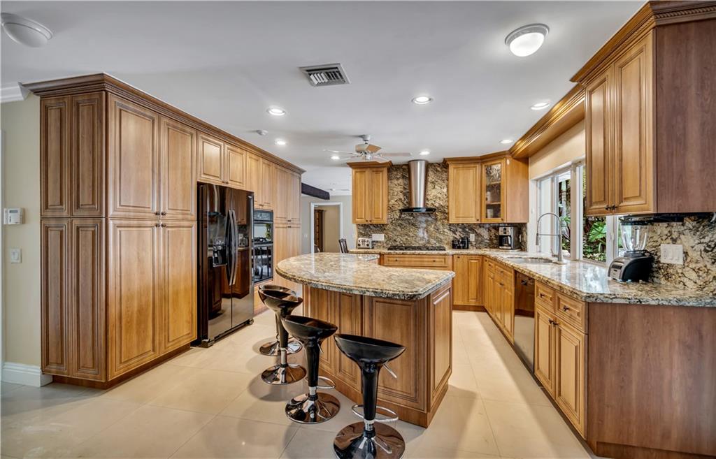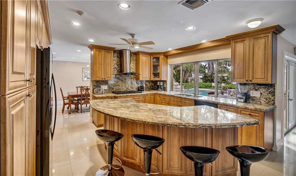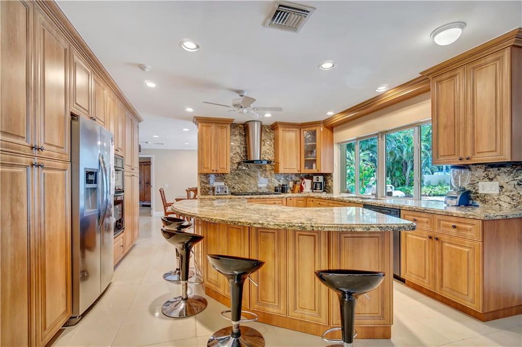This beautifully updated waterfront estate is located on a private drive in the much-desired community of Riverland. The residence sits on a generous 1/2 acre lot with 100Ft of dockage on a deep water canal with ocean access. The dock can accommodate up to a 90 ft yacht.The large private pool is accompanied by a custom spa pool with tranquil waterfall. The interior features an eat-in kitchen with custom cabinets and granite countertops. This property features 4 bedrooms and a large living room, perfect for company. There is an optional 5th bedroom or office ready to be converted. Minutes to Saint Thomas High School, short drive to the beach, Las Olas, Riverwalk, airport, downtown and more.