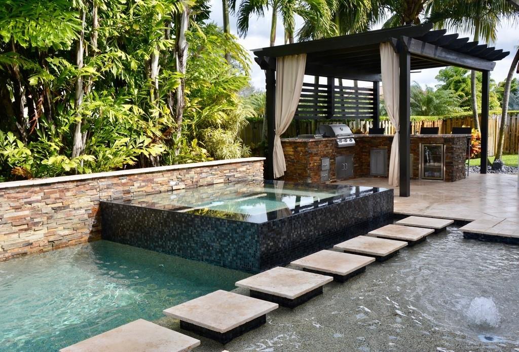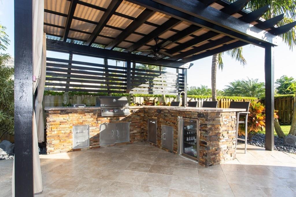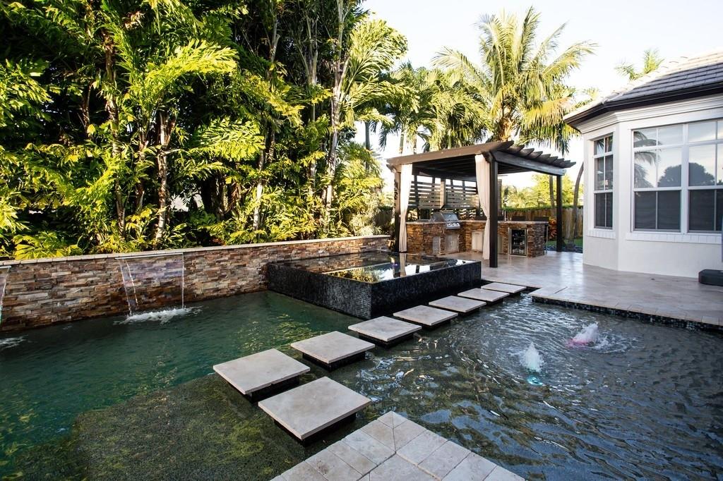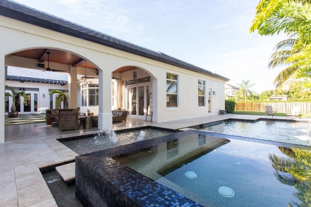 Magnificent gem situated in one of the premier family neighborhoods in Davie - "PROVENCE". This fabulous transitional architecture design single story home is on a corner lot w/almost one acre. 5 beds, 4.5 baths + Home Theater & total 5,000 sq.ft. w/3 car garage+car lift to accommodate additional car. Bright & open floor plan w/high tray ceilings, oversized high impact glass windows & doors throughout. Chef's delight kitchen, cooking island, pantry & breakfast nook. All custom built closets throughout. Large fenced yard w/play ground, spectacular courtyard w/covered outdoor lanai, fantastic for entertaining! Zen style heated swimming pool & spa next to modern custom design pergola, bar & outdoor kitchen all surrounded by lush landscaping w/custom lighting. Complete perfection throughout!