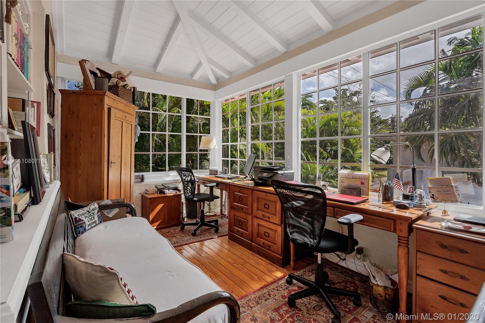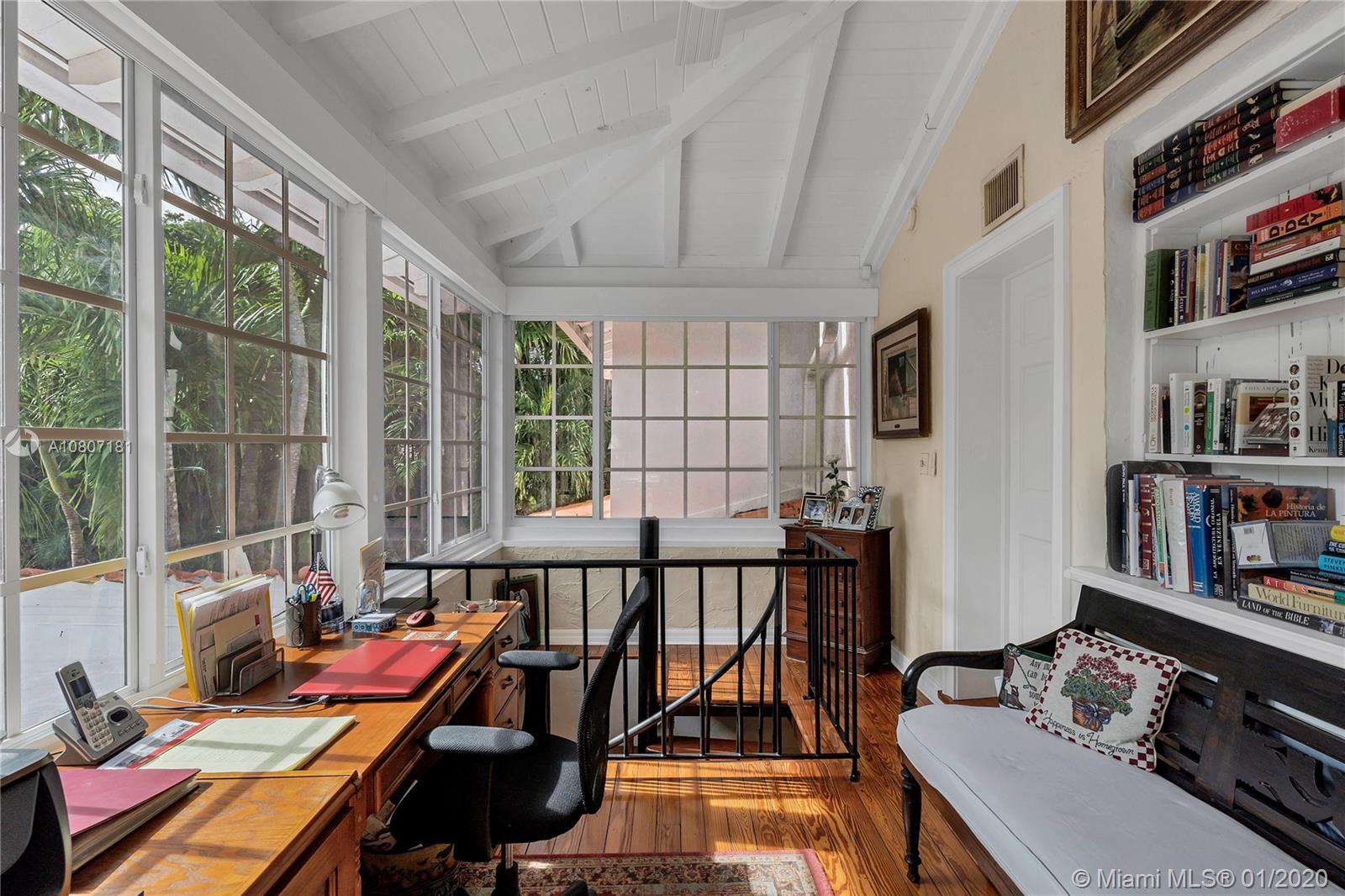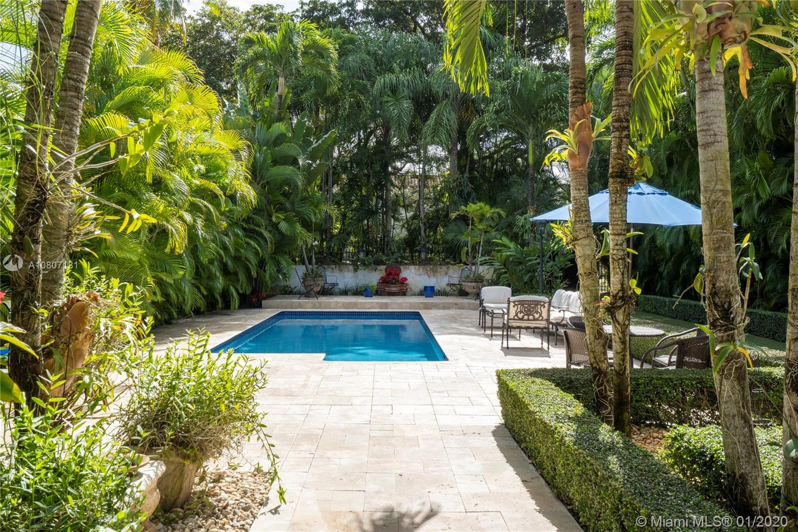 New Listing near the Coral Gables Library and the Coral Gables Youth Center. This 1920s carriage house has been significantly expanded and updated. It sits on a deep, lushly landscaped and private lot (139' x 75' = 10425 sq. ft). Entrance to the house has a brick patio with a beautiful fountain. Formal living room, dining room and sun room on the east side of the house; kitchen, informal dining room/ family room, and family/library on the opposite side. The family/library can easily be converted into a 4th bedroom with existing full bathroom. Three bedrooms and two bathrooms upstairs, with an office off the master bedroom. Lots of closets and storage. Beautiful pool/patio with plenty of privacy. Charm is everywhere!!