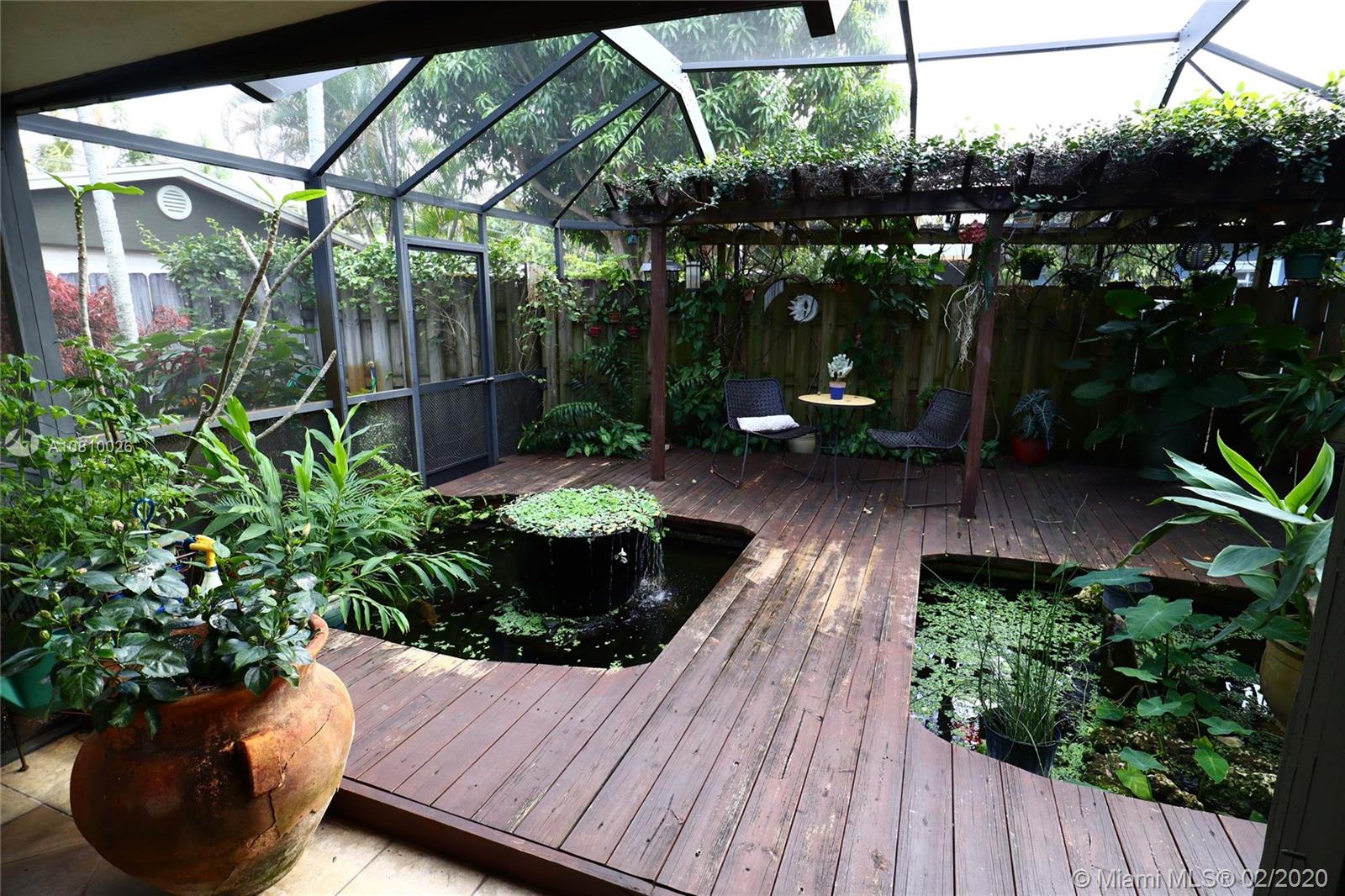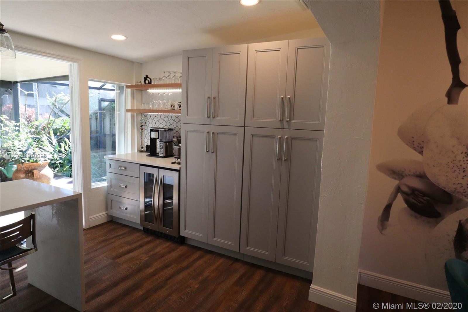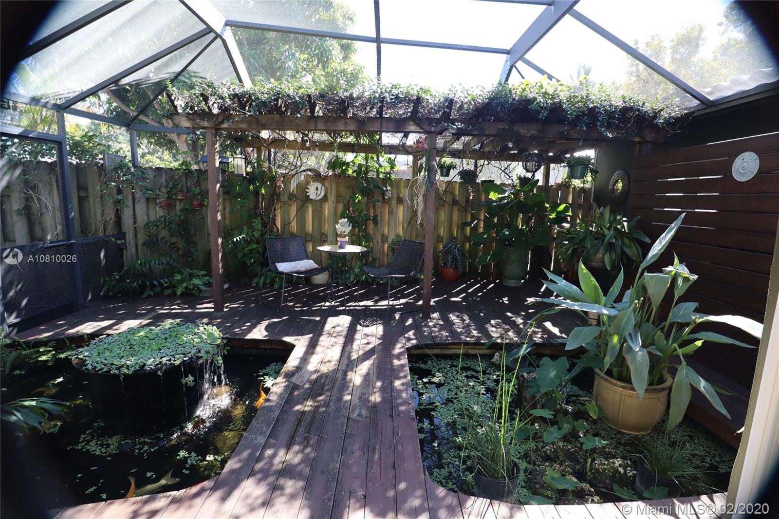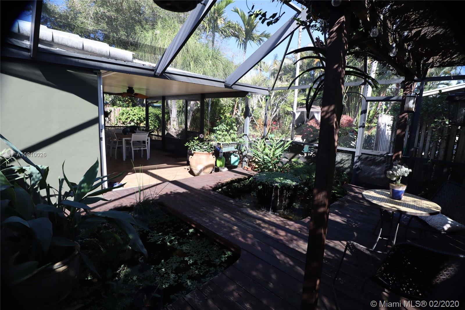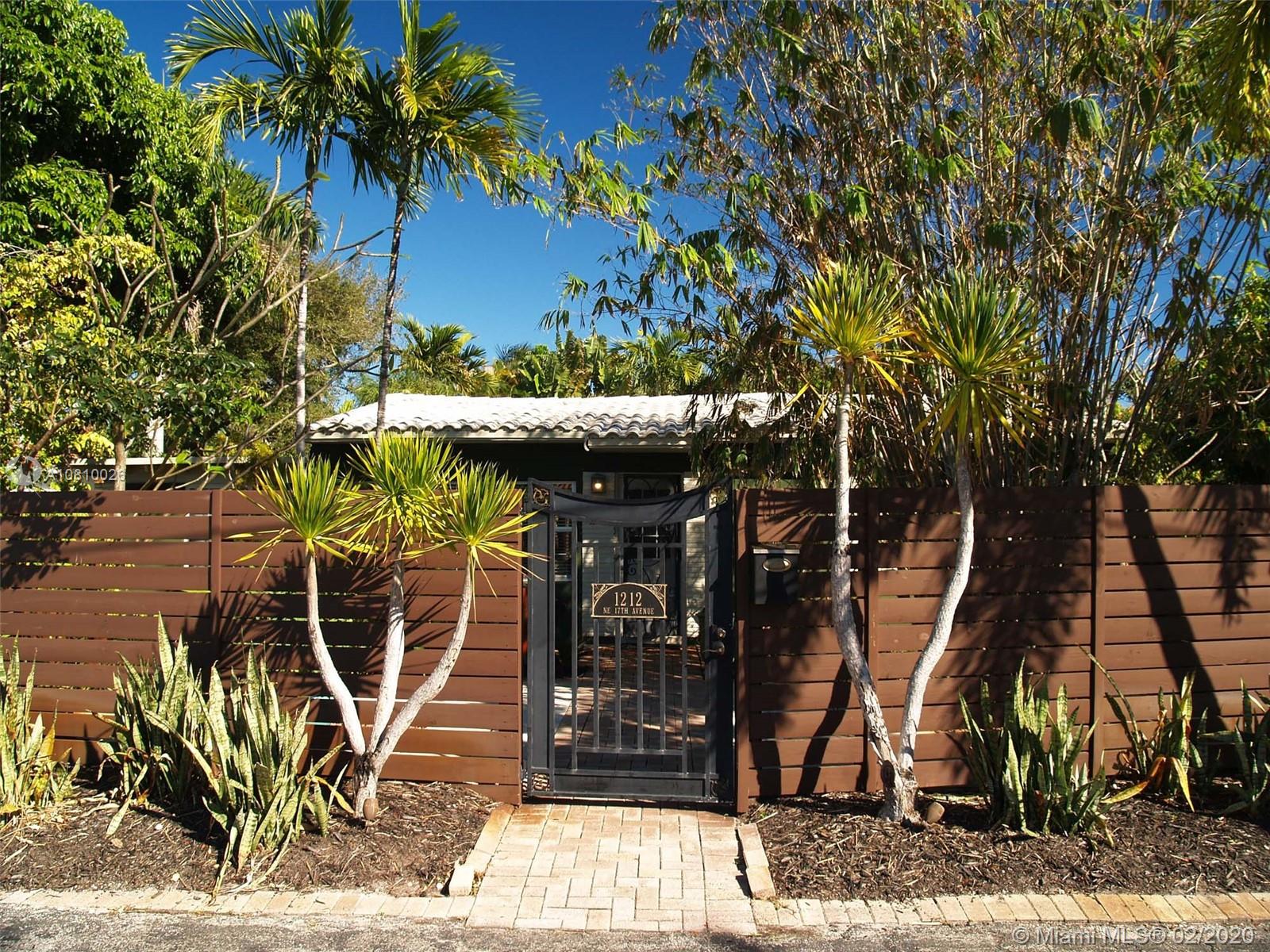 Immaculately upgraded open concept three bedroom, two bath pool home on private lot with rare find double car detached garage near everything in downtown Fort Lauderdale. This beautiful house features custom design barn doors separating bedrooms and living area. Terrazzo and high quality water-resistant vinyl plank flooring throughout, custom artistic Moroccan design backsplash with open shelf French style kitchen includes under cabinet lighting, brand new custom-made shaker style cabinetry, brand new Samsung stainless steel appliances, wine cooler and high quality quartz countertop throughout the island. This designer kitchen opens up to a relaxing screened in florida room including a koi fish pond with water fall under the trellis intertwined with jasmine vines.