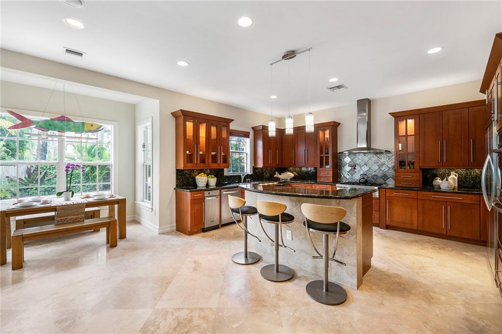 Picture perfect setting with mature oak tree canopies adorning this fabulous corner lot (97x120) estate home that offers 5 bedrooms, 5 baths, 3 car garage and an 18 x 44 resort pool with waterfall! Prime location in the heart of Rio Vista. Amenities include, Full house generator, impact windows and doors. Marble floors throughout house. Built in Butler's pantry. En-suite bedrooms, and loft/study area upstairs. Home has recently been painted exterior and interior. Ready to move in. Gourmet custom wood kitchen cabinetry with gas cooktop. Natural lighting throughout. Fully fenced yard. Don't miss this opportunity!