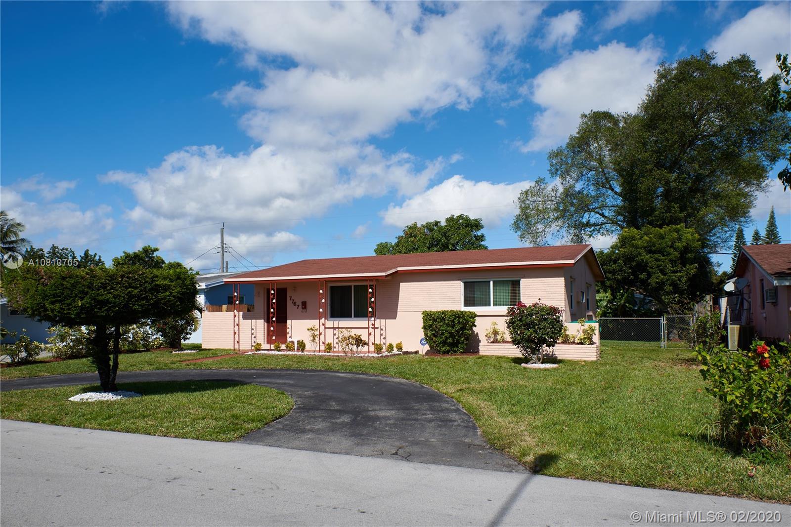 NO HOA! Immaculate Cozy Ranch! Taken Care of with Lots of Love, Pride & Joy in this beautiful 2 bedroom/ 1 bathroom home which features carpet flooring throughout for warmth and comfort to the soles. The kitchen features a beautiful back splash, ceramic tile and lots of cabinets for your storage needs. Newer Appliances: Refrigerator, Washer,Dryer. New Roof, New Hurricane Windows. Huge backyard for your family gatherings,gardening,space for a pool or any out door activity.Can also hold multiple cars with this lovely circular driveway. Happy Place to call home for the next family.