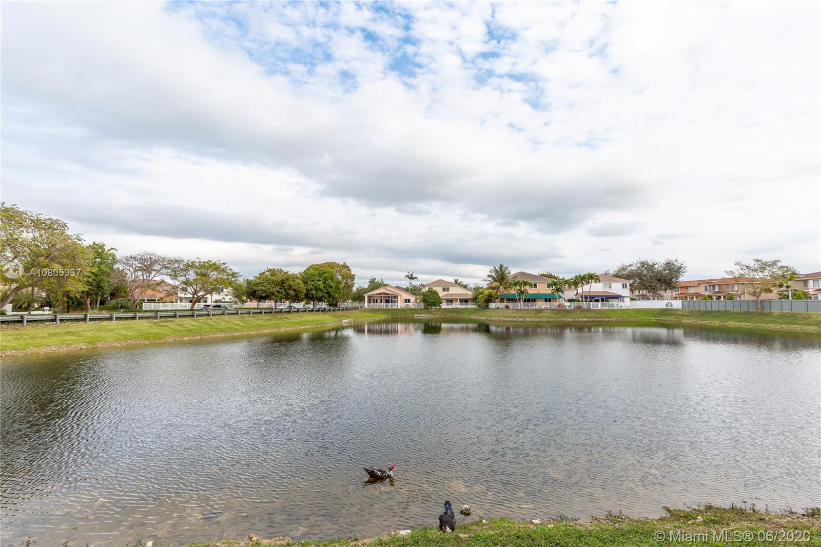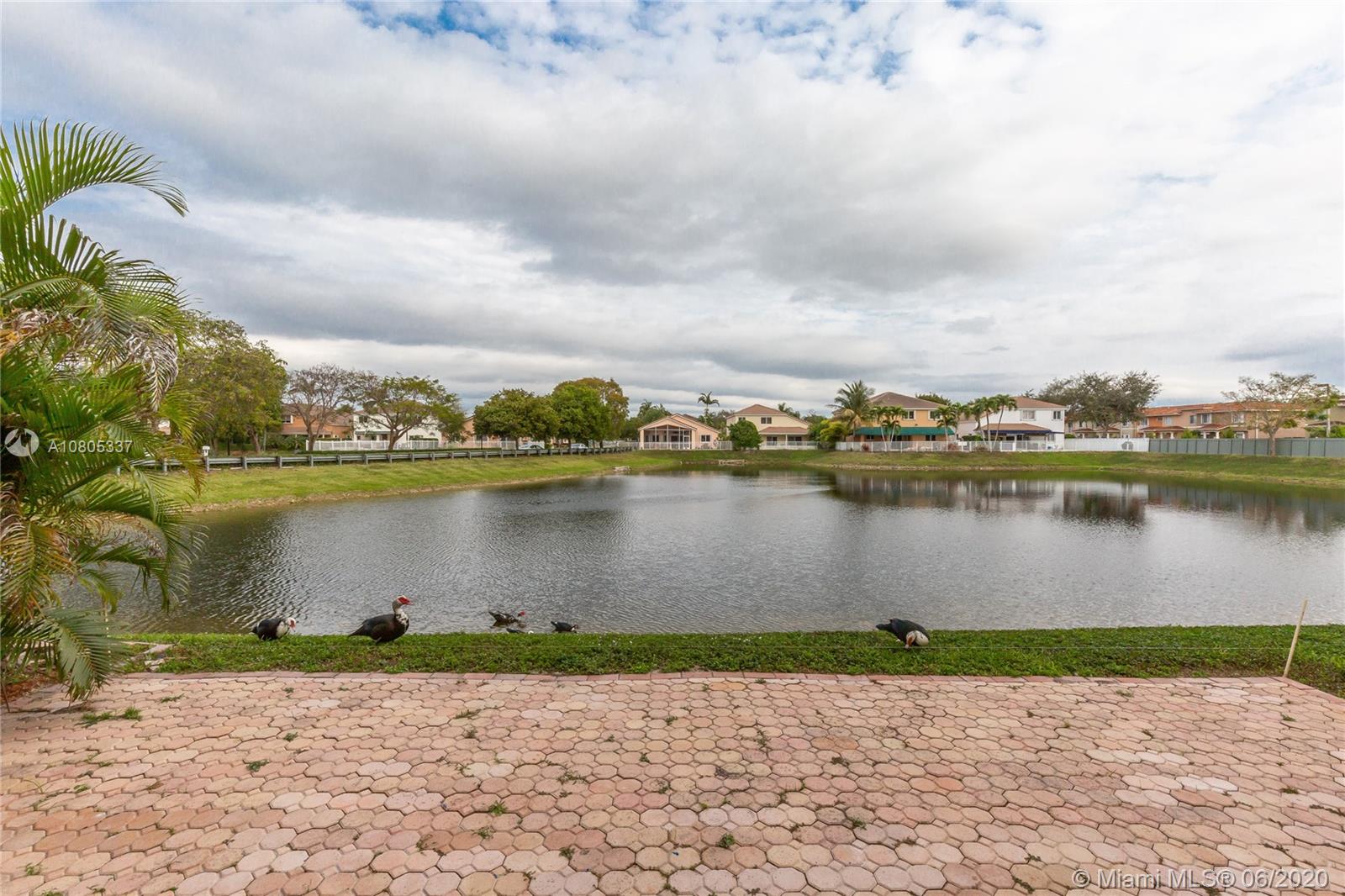 "One Story" Single Family House in Doral Gardens/ Gated Community. With beautiful front lake view. 4 beds, 2.5 baths. From the family room, dining room, kitchen and master room you can appreciate the beautiful view of the lake. With two spacious closets in the master room /one walk-in closet. Low association includes cable, internet and alarm. Double covered garage. Exclusive community in the best area of Doral with the best A schools. With only 52 houses and 4 lakes. Close to all highways, attractions and shopping centers.