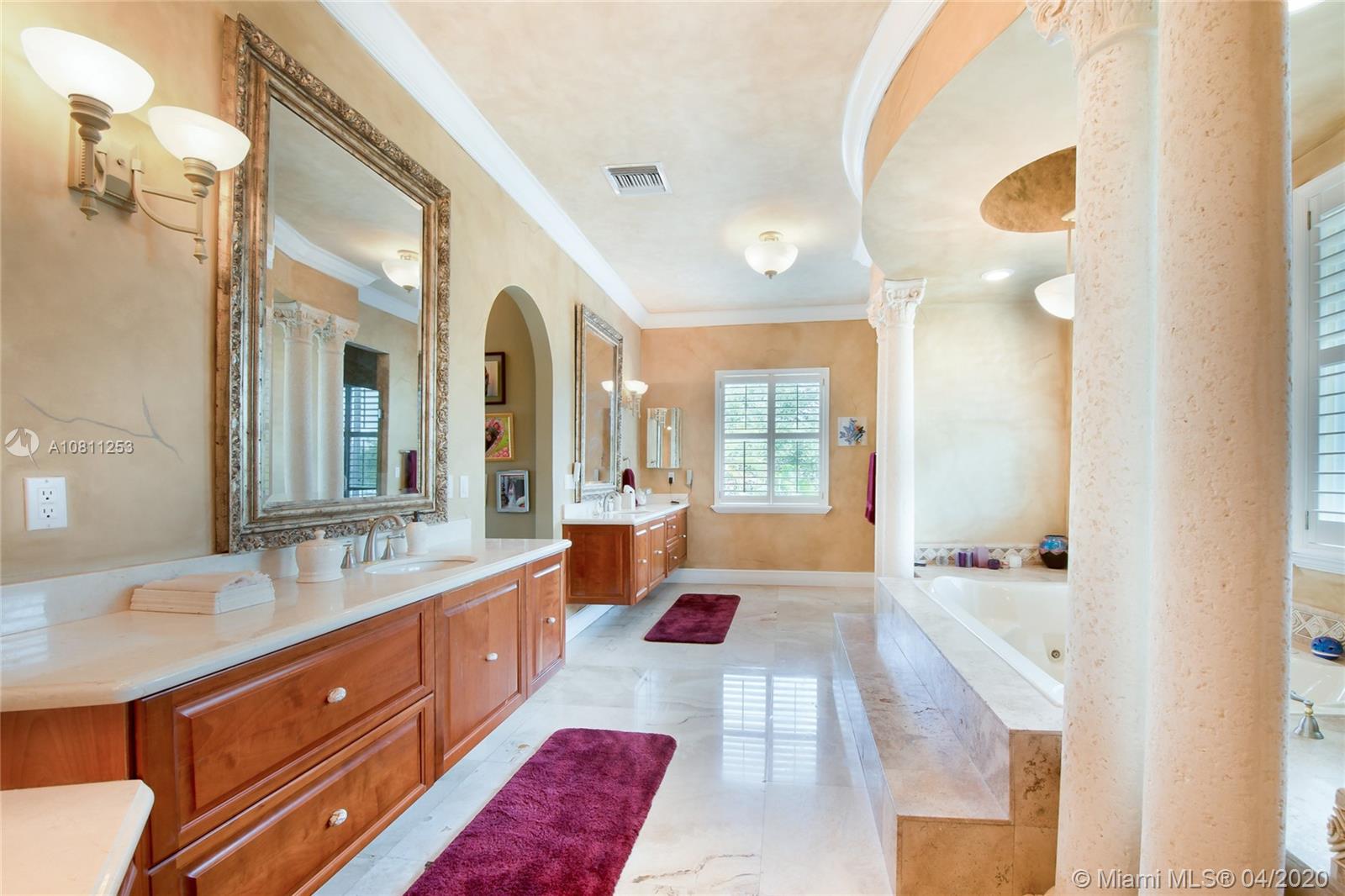 Waterfront residence with no bridge to Bay!Direct ocean access! Stunning and elegant updated estate of 6BD/4.5BA of 5452 SF luxury living situated on cul-de-sac street in guard-gated Gables by the Sea. A mere minute from its own 100-ft dock to the open bay! Imposing Hi-volume ceiling entry. Glorious living and formal dining rooms with fireplace! Gourmet kitchen, lavish master suite with balcony! Gleaming marble floors, hi-impact glass windows and doors. Fine appointments throughout. Completely renovated and beautiful terrace/patio with heated pool/jacuzzi, fire pit. An outdoor gazebo with summer kitchen. 2 car garage with an additional car-lift! A well-finished basement, lots of extras! Coral Gables service privilege! Excellent Pinecrest schools, community park...Boater's dream and oasis!