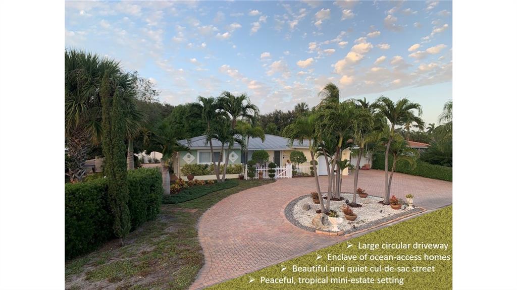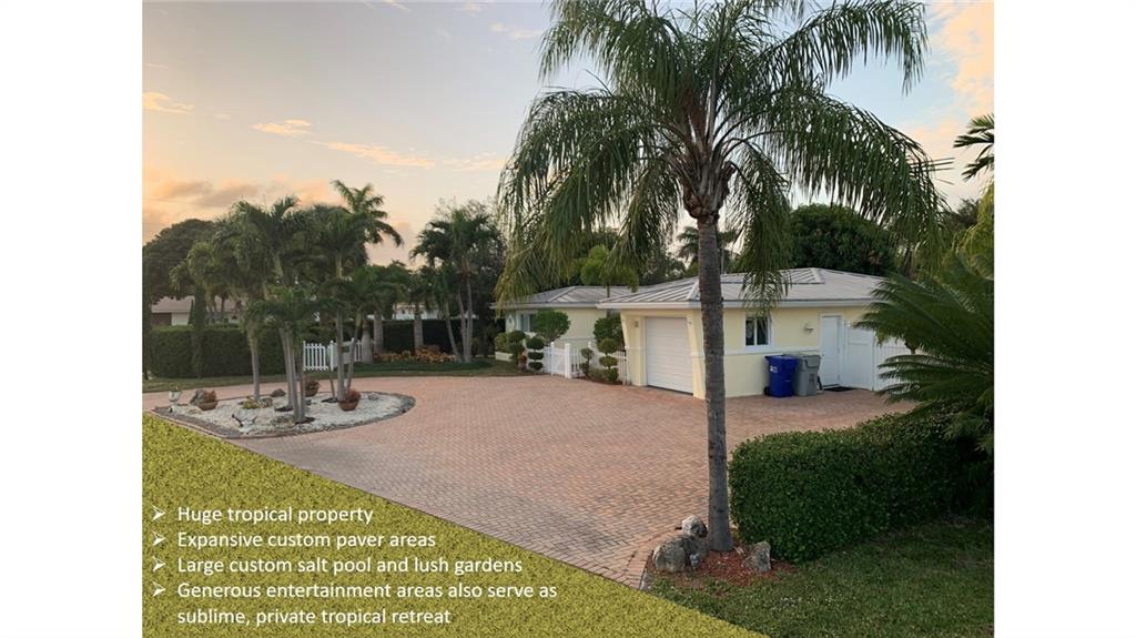 Park-like setting of a completely renovated Key West styled mini-estate. Metal roof, impact windows & French doors, gourmet granite/stainless kitchen, tile floors throughout. Laundry room off kitchen includes additional refrigerator, pantry, cabinets and utility sink. Custom pool and maintenance free white PVC fencing add respite & privacy. One-Car Attached Garage and 5,000+ square feet of pavers, provide ample room for entertaining. Huge circular driveway, wrap patios and parking for 10+ cars/boats. Mature, professional landscaping, fruit producing Mango trees, exotic palms, orchids and live oaks. Professional renovation, Gas Service, Home Warrantee and windstorm credits add piece-of-mind to owning this tropical beauty.