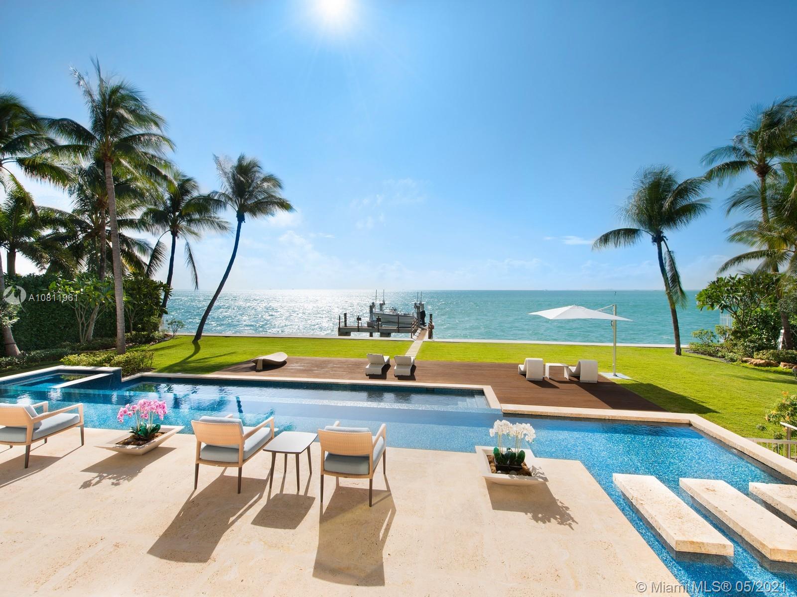 Enjoy ocean and sunset views from this 2014 Mashta Island estate on a 23,814 SqFt oversized lot with 138ft of water frontage. This custom-built home, inspired by Modern architect Richard Meier, features pure geometric lines and integrated open spaces with an emphasis on natural light. Unique features include a 3-story curved glass curtain wall, 14 skylights over a 27-ft high atrium, NanaWall folding glass doors, elevator, gym, dock, staff quarters, 4-car garage, generator and smart home technology.