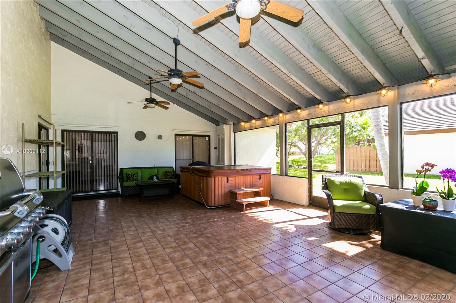 Charming 3 bedroom 2 bath one story home, set on a cul de sac street, has a spacious 500 sq ft covered and screened patio perfect for enhancing your outdoor Florida living experience. The recently updated kitchen with white shaker cabinets, granite counter tops, farmhouse sink and stainless steel appliances features a center island which overlooks the family room. Additional features include newer wood flooring throughout the house, updated fixtures, vaulted ceilings and split bedroom plan. Hot tub and fenced side yard complete the outside. Roof 2013. Association fee includes lawn maintenance and sprinkler irrigation. Steps to community pool, elementary school and shopping.