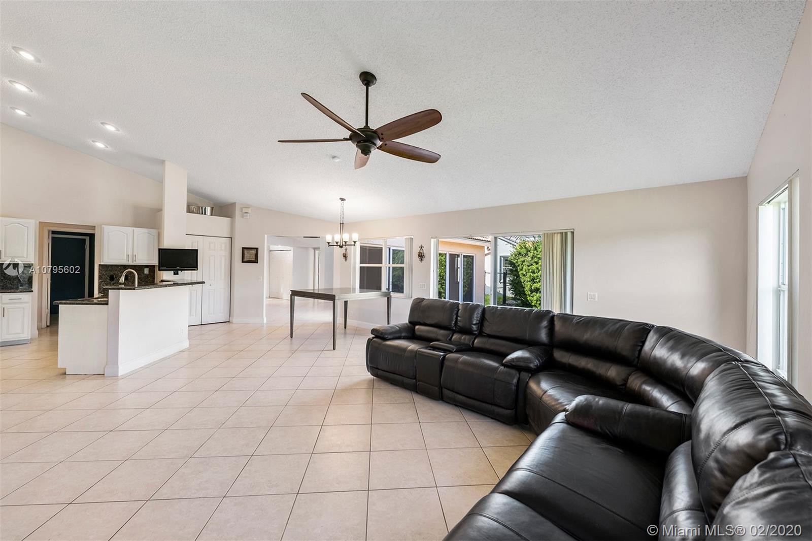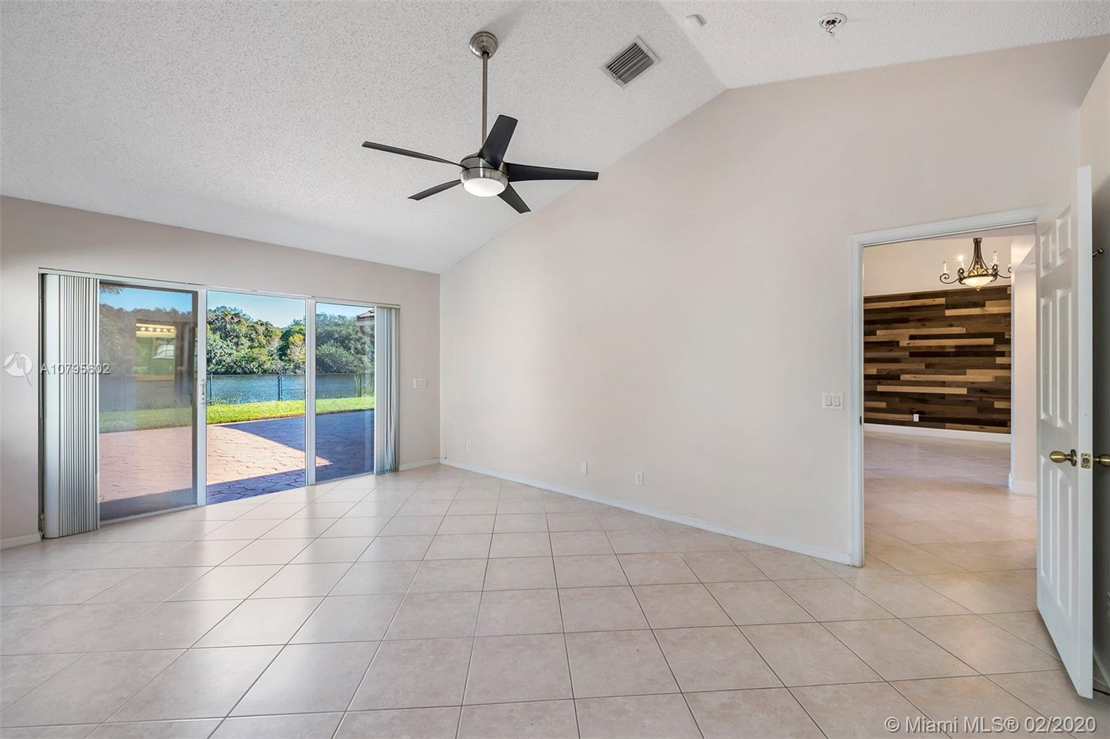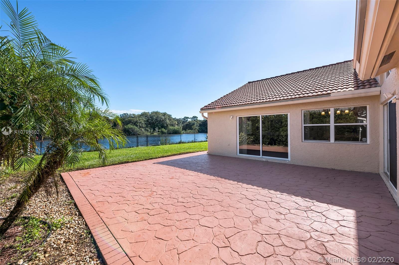 Spacious waterfront home in The Ridge on Nob Hill features 4BR (triple-split), 3BA, 3 car-garage, with tranquil and water and preserve views. Open-style floor plan w/ lots of natural lighting, formal living & dining areas, architectural niches, volume ceilings, upgraded kitchen w/ granite, stainless steel appliances, breakfast bar and area, open to Family Room. Master suite features 2 walk-in closets w/ built-ins, vaulted ceiling, sliding door access to private patio area, and an on-suite with spa-tub, dual sinks, and separate shower. Tile throughout, hurricane shutters, impact Cabana Bathroom door, fully fenced yard, community pool, walking trails, near Tree Tops Park, Westridge Open Space Preserve, Pine Island Ridge Natural Area, major highways and great schools.