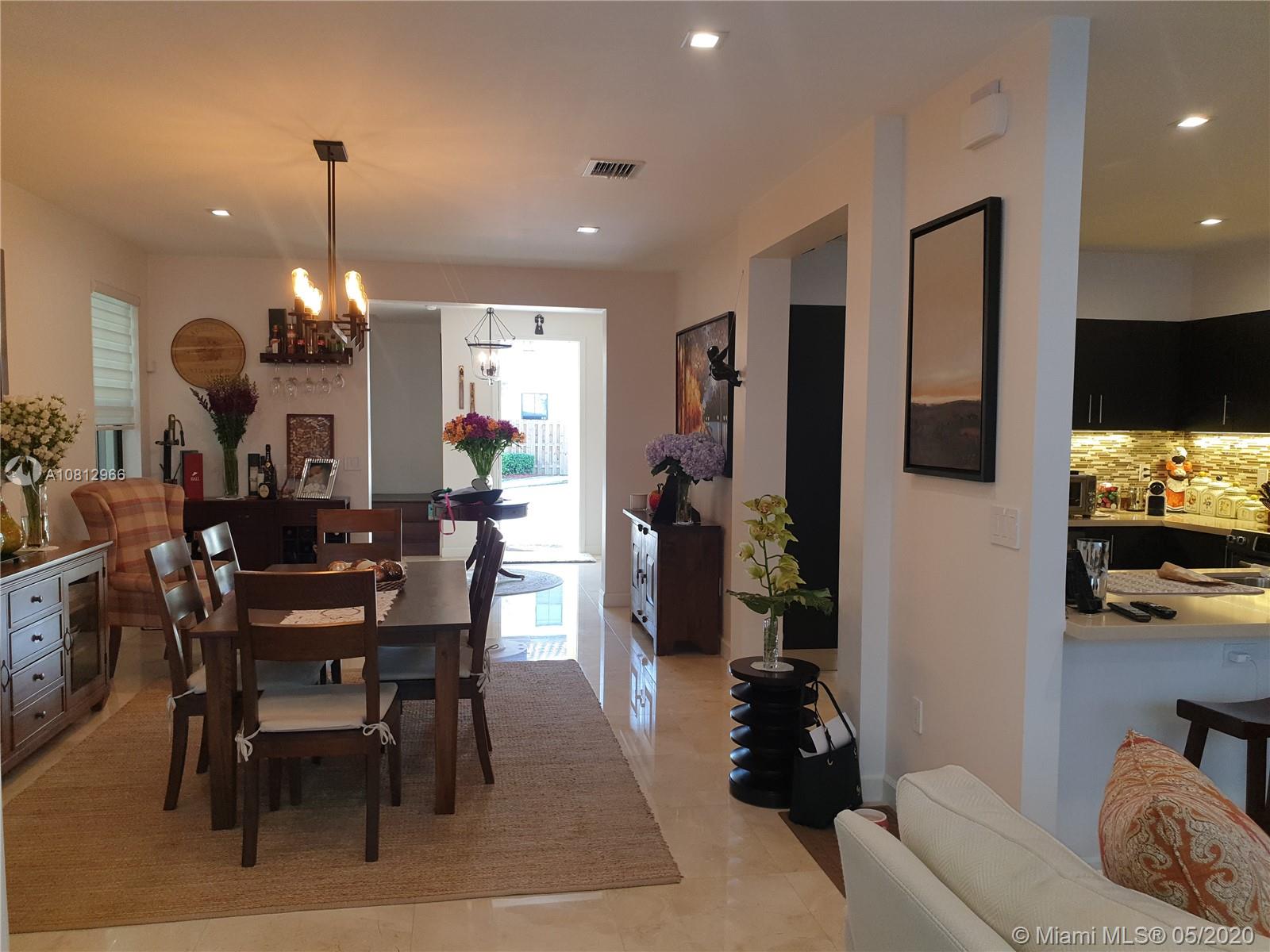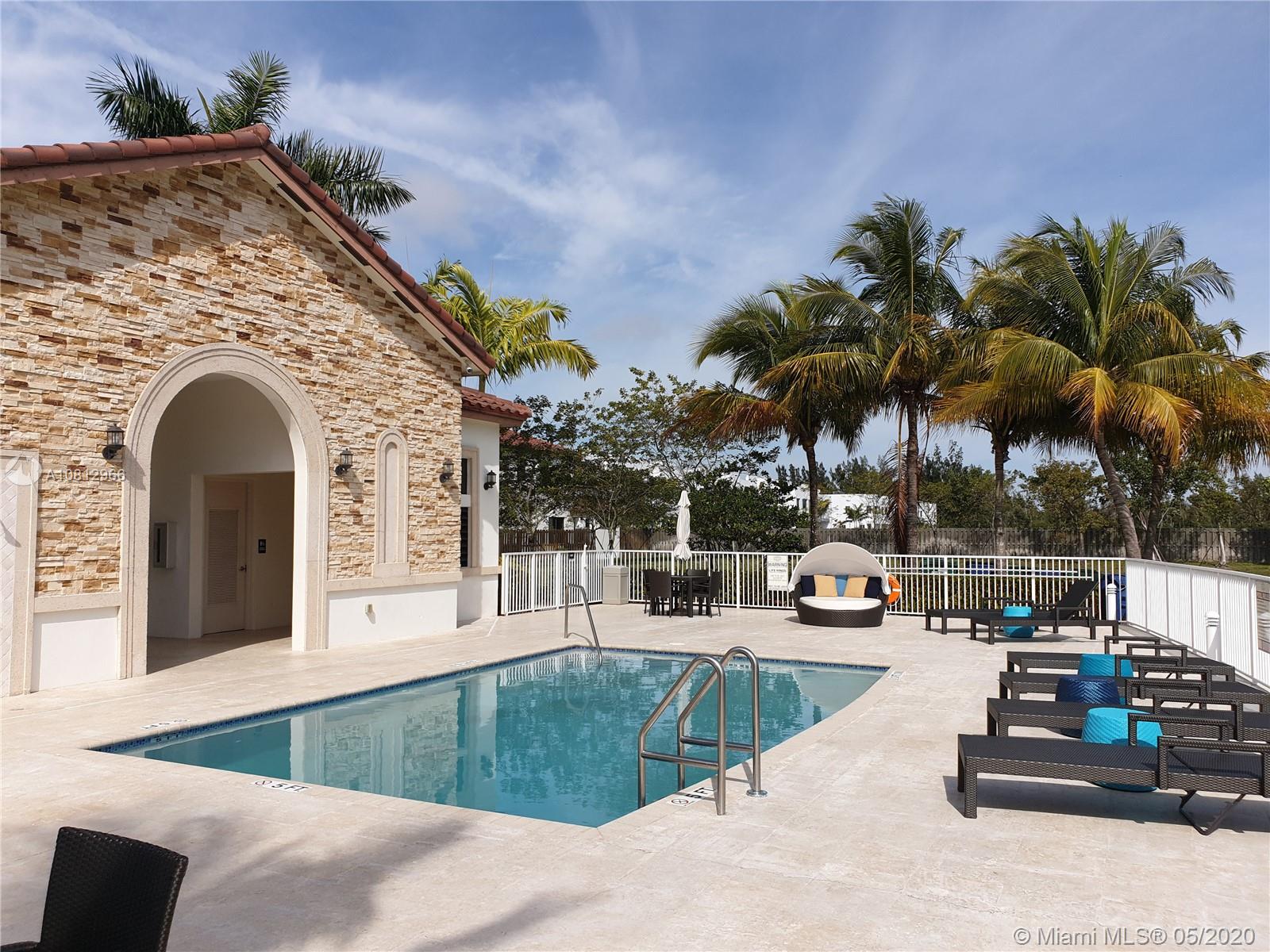 Beautiful and ready to move in 3 bedroom, 2 ½ bathrooms + den house, to include a wide variety of upgrades for your enjoyment. Upgrades include redesigned visitor bathroom, marble floors, recessed lights, stainless steel appliances, quartz top counters, wine cooler, modern blinds, wood stairs and handrails, wood floors on second floor, upgraded closets with closet system, impact windows, built-in barbecue, and an electric awning and paved floor in the terrace. Garage with cabinets and upgraded epoxy floor. Common areas include a spectacular clubhouse with pool, gym, sauna, and game room. Vintage Place is a small gated community that also provides safety with security patrols located in and excellent neighborhood that is close to shops, highways and A + schools. MOTIVATED SELLER!!!