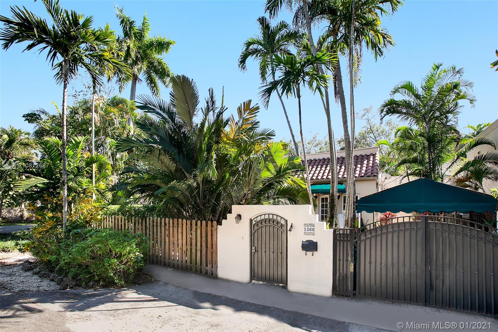 Sited on a prime corner lot in the highly desirable, close-in North Grove, this 1920s Spanish-style home has been completely updated & reimagined w/much of its original character retained. The expanded 3/2.5 boasts oak plank floors & 2,245 SF of delightful living space, including a light-filled dining/sunroom. The graciously scaled Master features an en suite bath & walk-in closet. Cook & entertain w/ease from the centrally placed kitchen w/bright white cabinets & gorgeous granite counters. Classic French doors open to the large pool & spacious stone patio. Impact windows/doors thruout; covered, gated parking and a brand new roof in 2020. A distinctive arched entry welcomes visitors to this gated tropical oasis located just 5 minutes from Brickell/Downtown. Picture-perfect SoFla living!